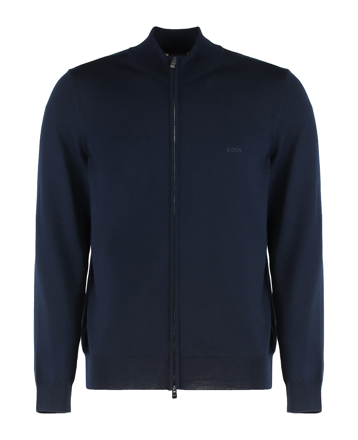 Sweater with long sleeves in a sophisticated shade of dark blue. the design features a zip closure and a high collar, ideal for an elegant and modern look. made from a soft fabric, it offers comfort and warmth, making it perfect for the autumn and winter seasons. the sleeves have a regular cut that ensures a good fit. this sweater is versatile and can be paired with both casual jeans and more formal trousers.