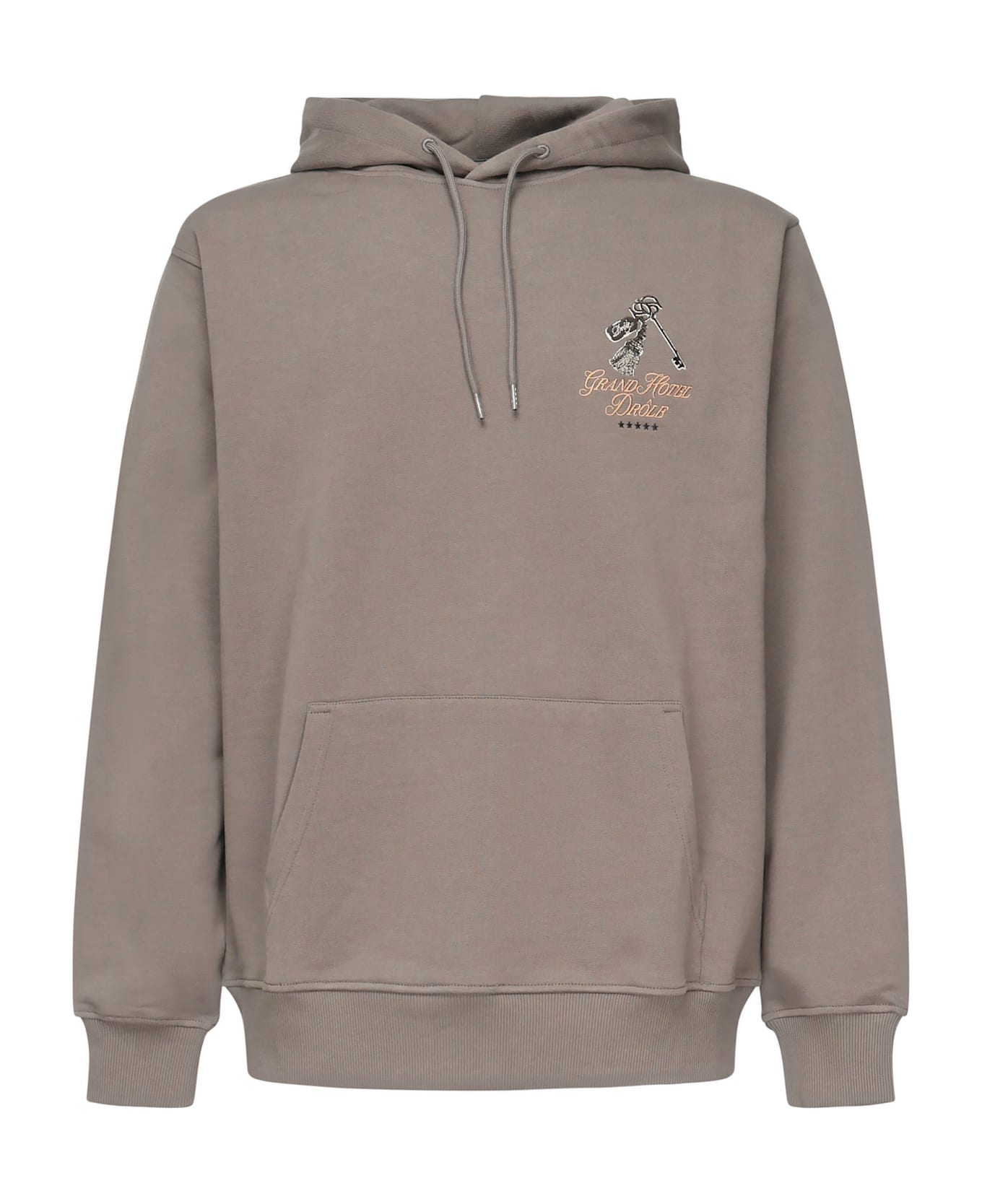 - Made of cotton - Embroidery on the front and back - Drawstring hood - Ribbed hem and cuffs - Long sleeves - Kangaroo pocket - Oversized - Size shown in the photo is M - Color: Taupe