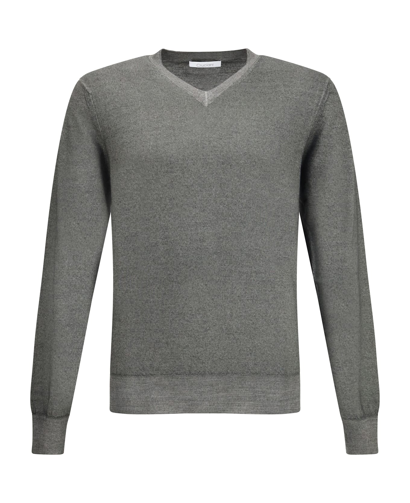 The green v-neck sweater by cruciani combines luxury and comfort with its fine cashmere and silk blend. the knit design, long sleeves, and straight hem create an elegant, timeless silhouette, perfect worn alone or layered for a sophisticated look.