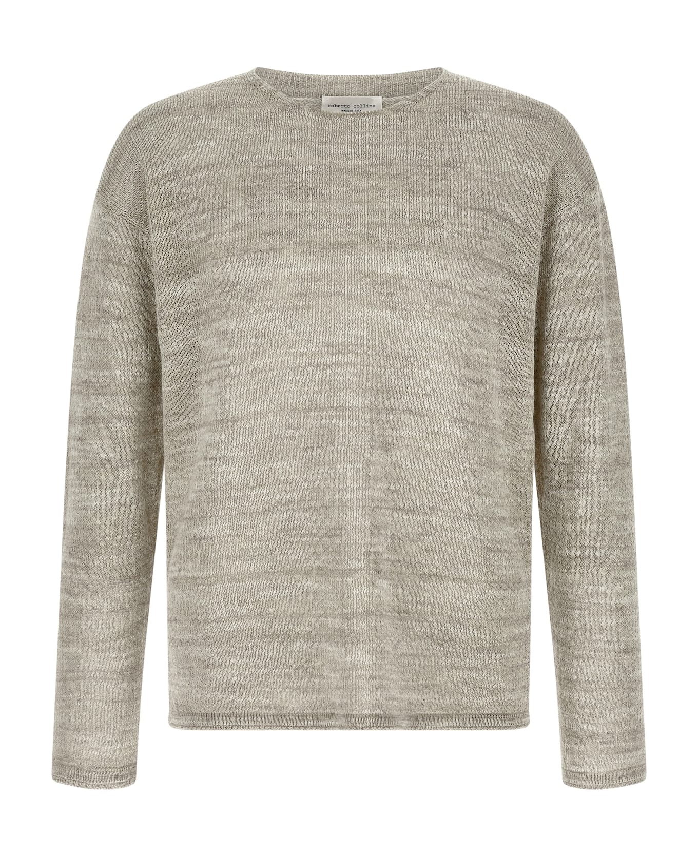 Mouliné knit knit cotton and linen blend sweater that mixes threads of different shades, crew neck, long sleeves with cuffs. Composition: 62% co, 20% li, 18% pa
