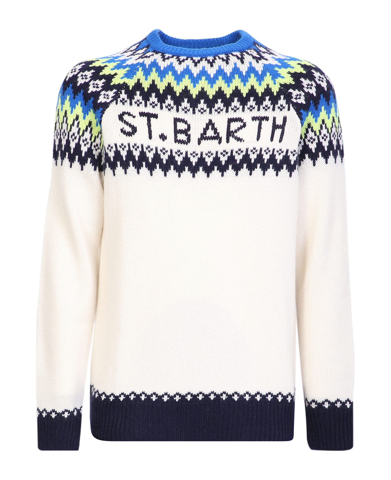 Showcasing an eye-catching design, the MC2 SAINT BARTH jacquard sweater stands out with its upper Fair Isle pattern and contrasting 'ST.BARTH' logo. Finished with ribbed trims for a comfortable and defined fit. Composition: 45% Acrylic, 35% Polyamide, 22% Wool