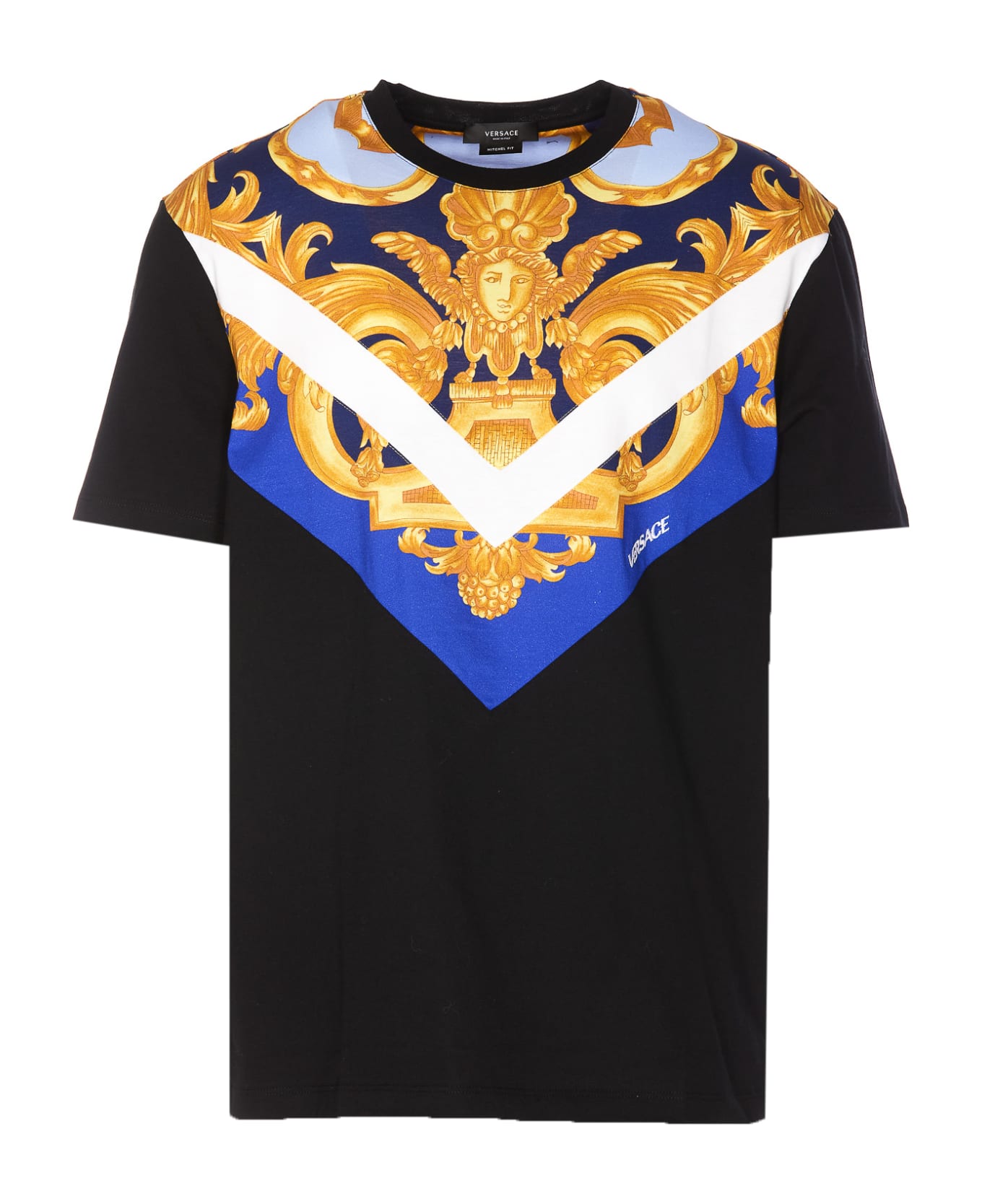 Versace black t-shirt with 660 barocco print, crewneck, embroidered mini logo on the front Composition: 100% Cotton