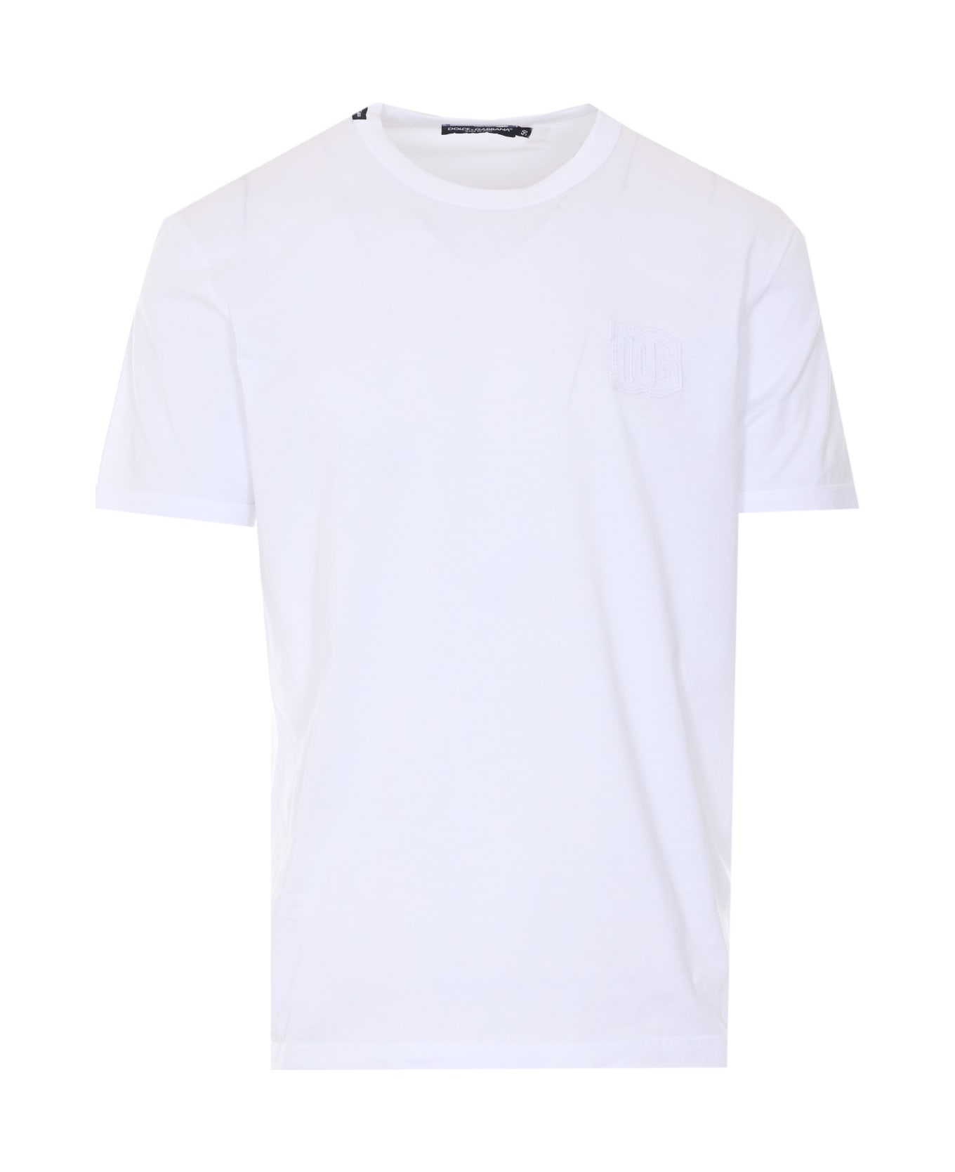 Dolce&Gabbana white DG patch t-shirt, crewneck, embroidered patch logo on front, tone sur tone Composition: 100% Cotton