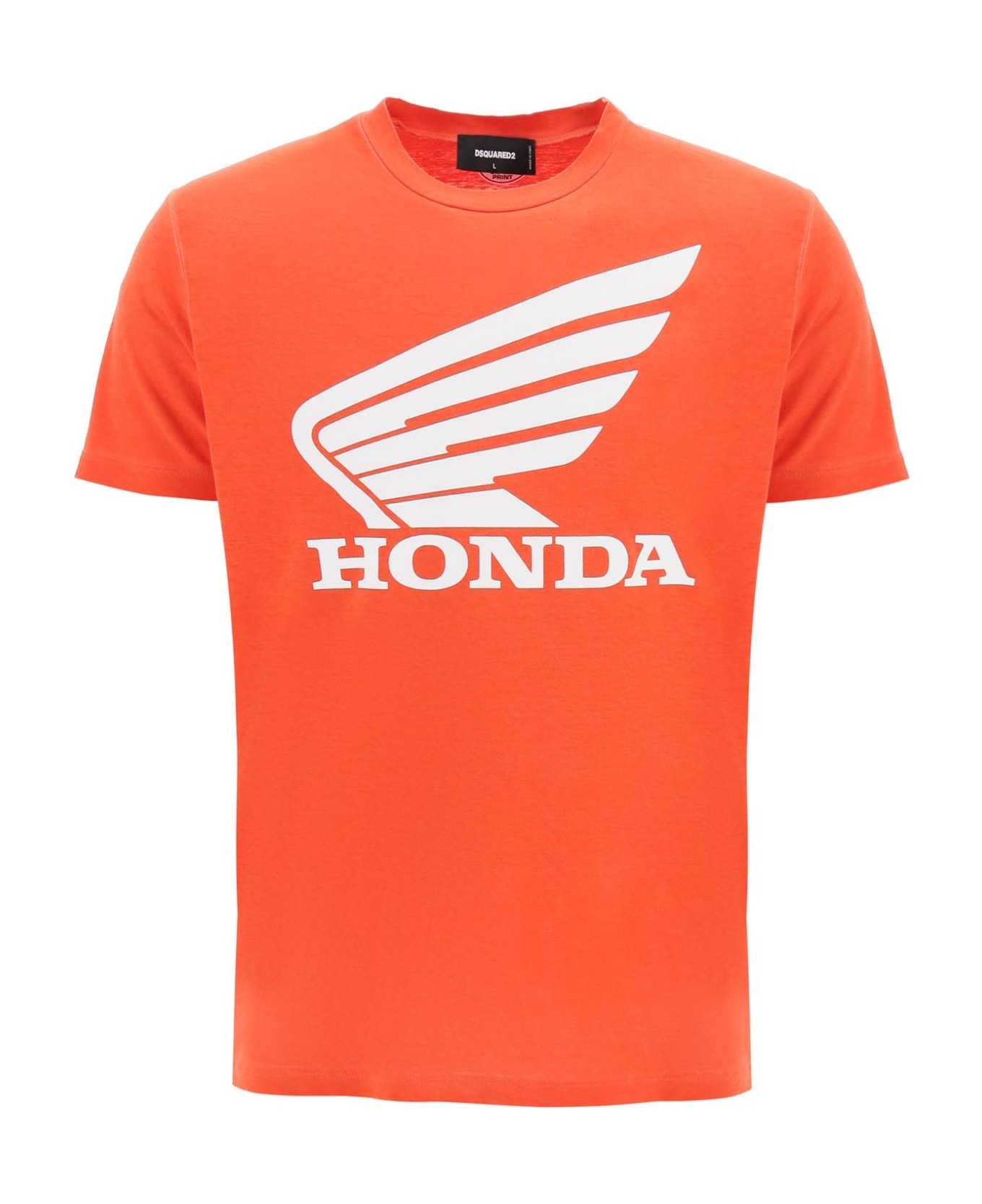Dsquared2 short-sleeved t-shirt personalized by the Honda print on the front and finished with ribbed crew neck. Regular fit. The model is 187 cm tall and wears a size L.