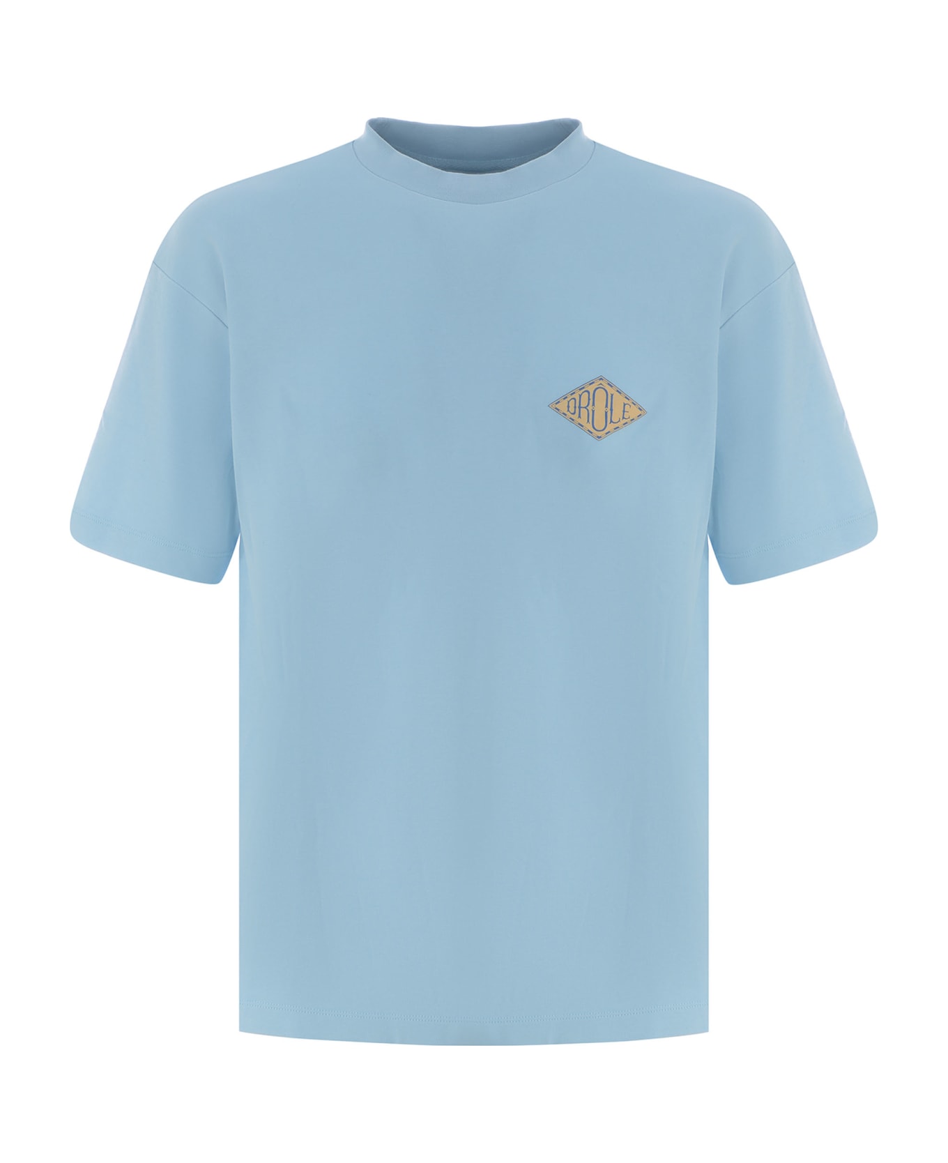 T-shirt Drole De Monsieur made of Light Blue cotton. Ribbed crew neck. Short sleeves. Contrasting "Drole" logo on the chest. Maxi logo print on the back. 100% Cotton