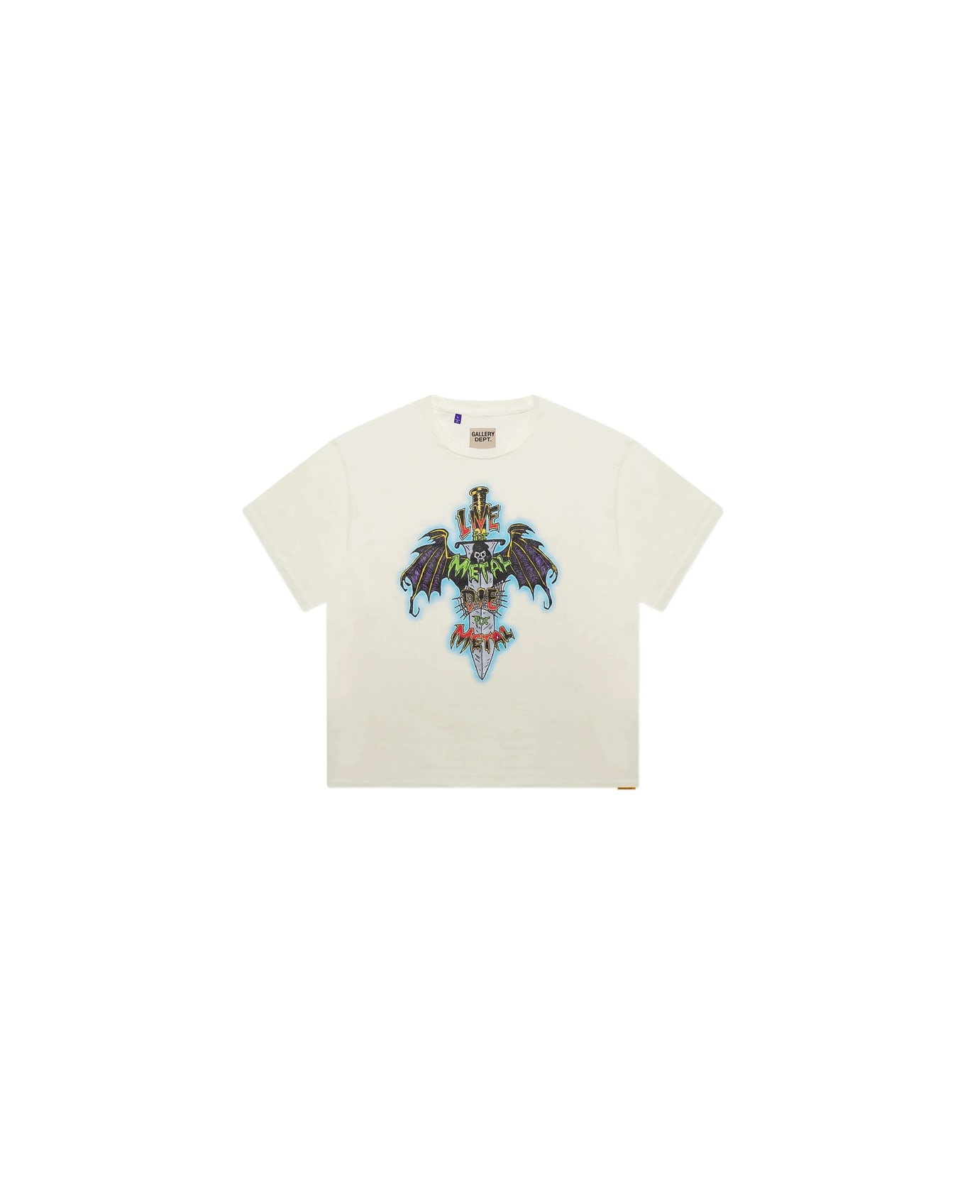 off-white dagger graphic print 'Live For Metal' text gold-tone logo lettering