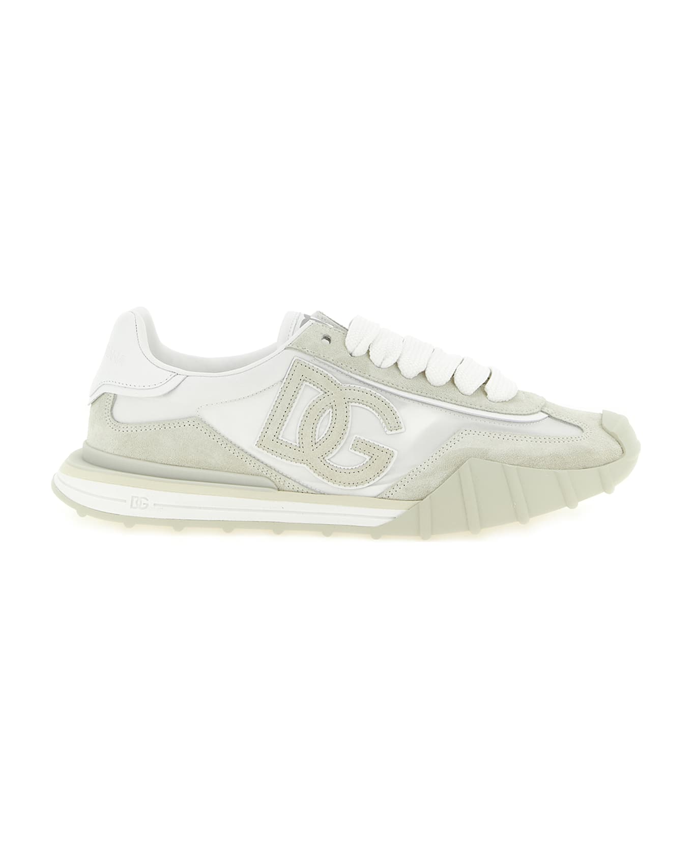 'DG Athletic' suede and canvas sneakers, side logo, contrasting smooth leather heel with embossed logo, lace-up closure, felt insole, thermoformed foam fussbett insole wrapped in leather, rubber, Phylon and TPU sole. Composition: 46% polyamide 54% calf leather