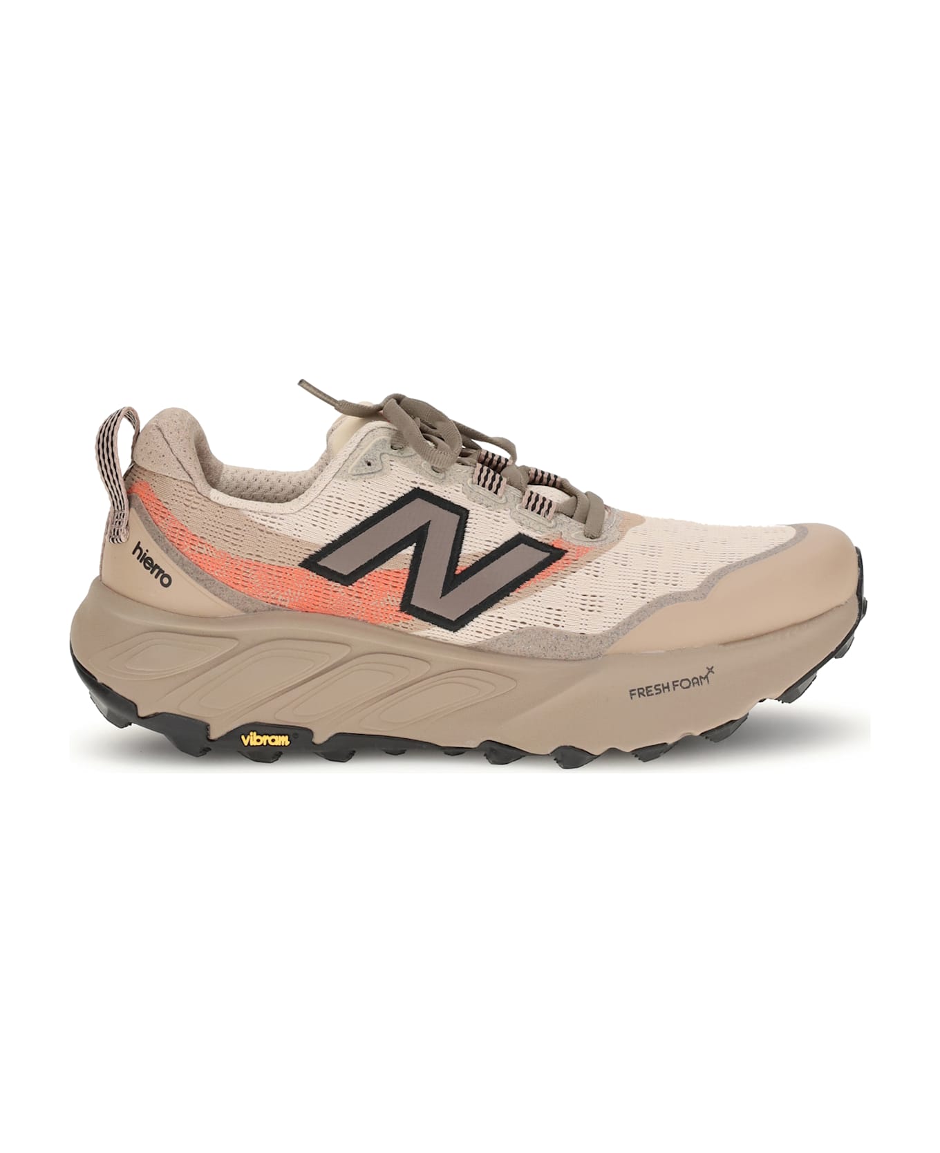 New balance's fresh foam x hierro v9 sneakers are designed to tackle the most challenging terrain with maximum comfort. the midsole with fresh foam x technology combines a softer top layer for exceptional cushioning and a firmer base for stability on uneven surfaces. vibram® megagrip outsole with traction lug technology provides optimal grip on dry and wet terrain, while toe protect technology offers protection against rocks and debris. completing the design is the gusseted tongue, which improves fit and prevents outside elements from entering the shoe.