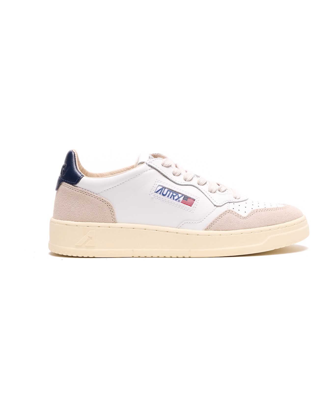 Autry white and beige Medalist sneakers, laces closure, round toe, leather and suede upper, lateral logo