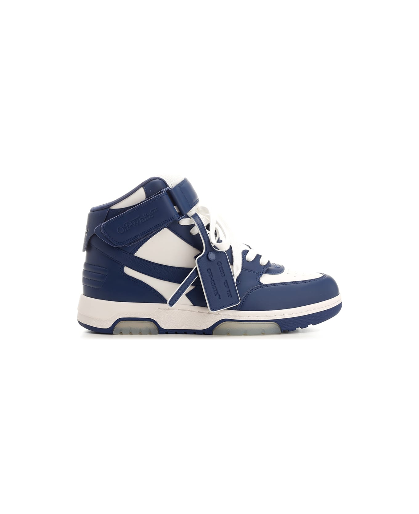 'Out of Office Mid Top' sneakers from Off White in white and blue leather