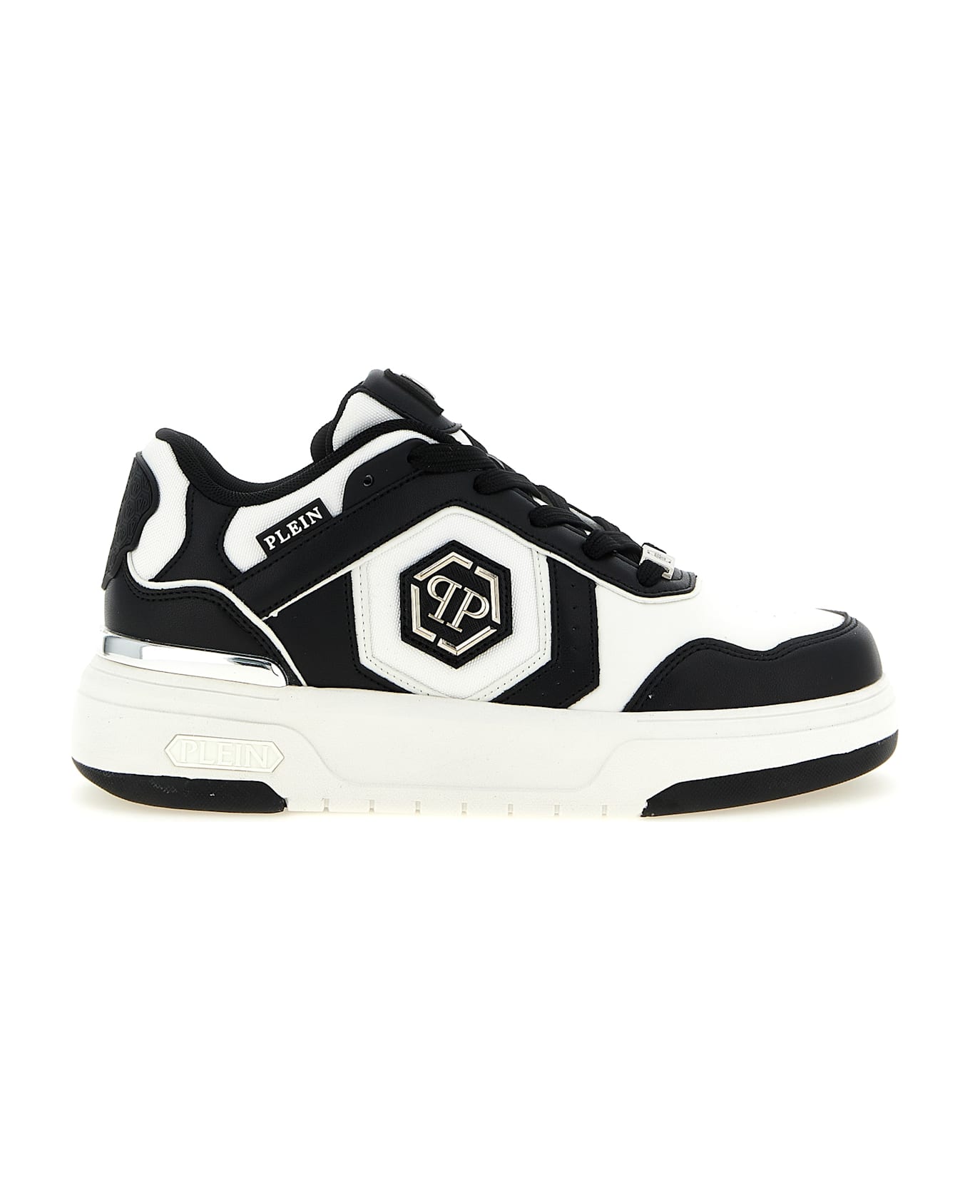 'SK8R' sneakers in leather-effect fabric and canvas with contrasting details, lace-up closure, padded tongue and instep, side nickel-plated logo, back nickel-plated spoiler, high-tech ergonomic and ultralight rubber midsole with cushioning function, removable insole, rubber sole with shaped tread.