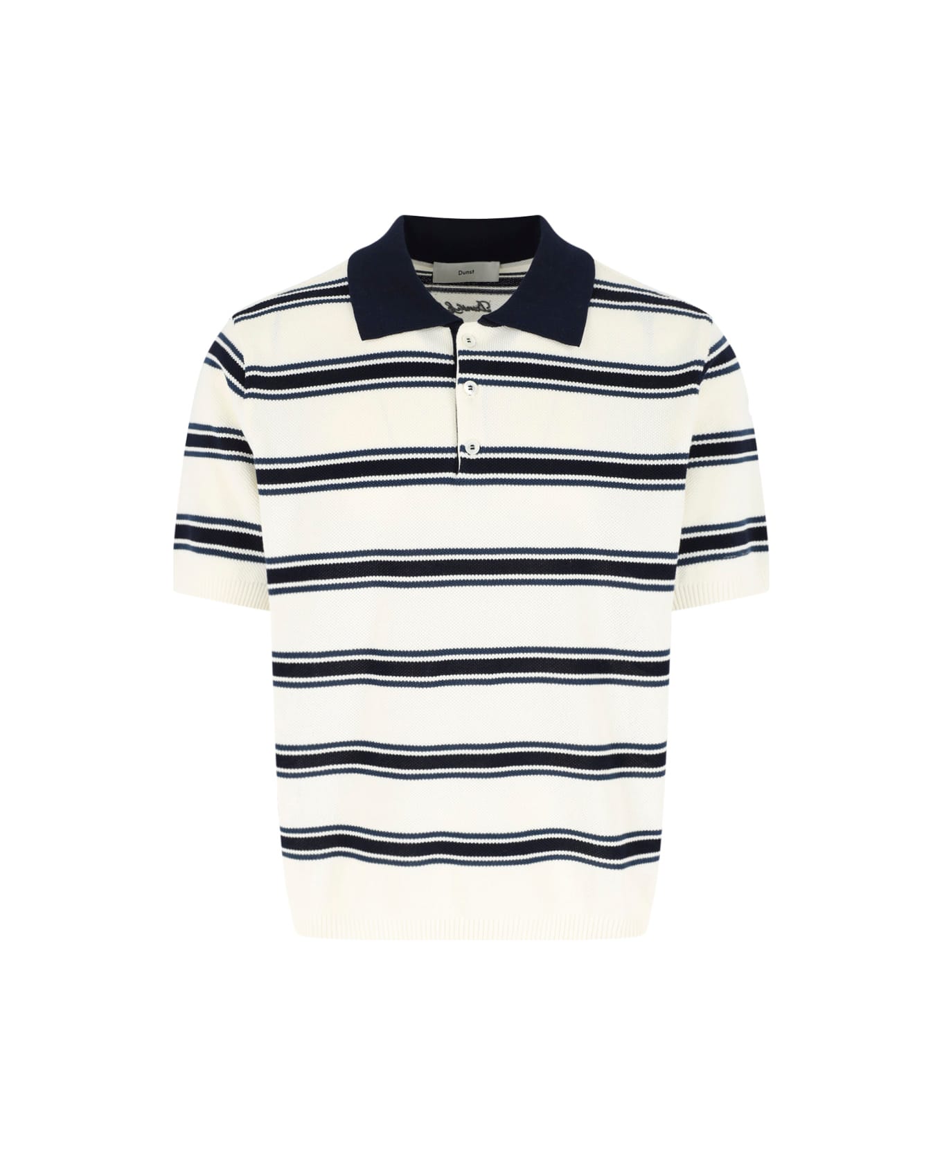 - Striped Dunst polo in white and blue cotton - Classic collar - Button closure - Elasticated finishes
