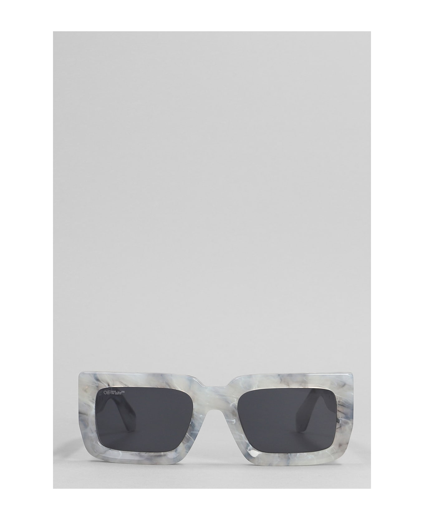 Boston Sunglasses in grey acrylic, rectangular lents, iconic lateral logo, marbled effect, 100% acrylic, Made in Italy