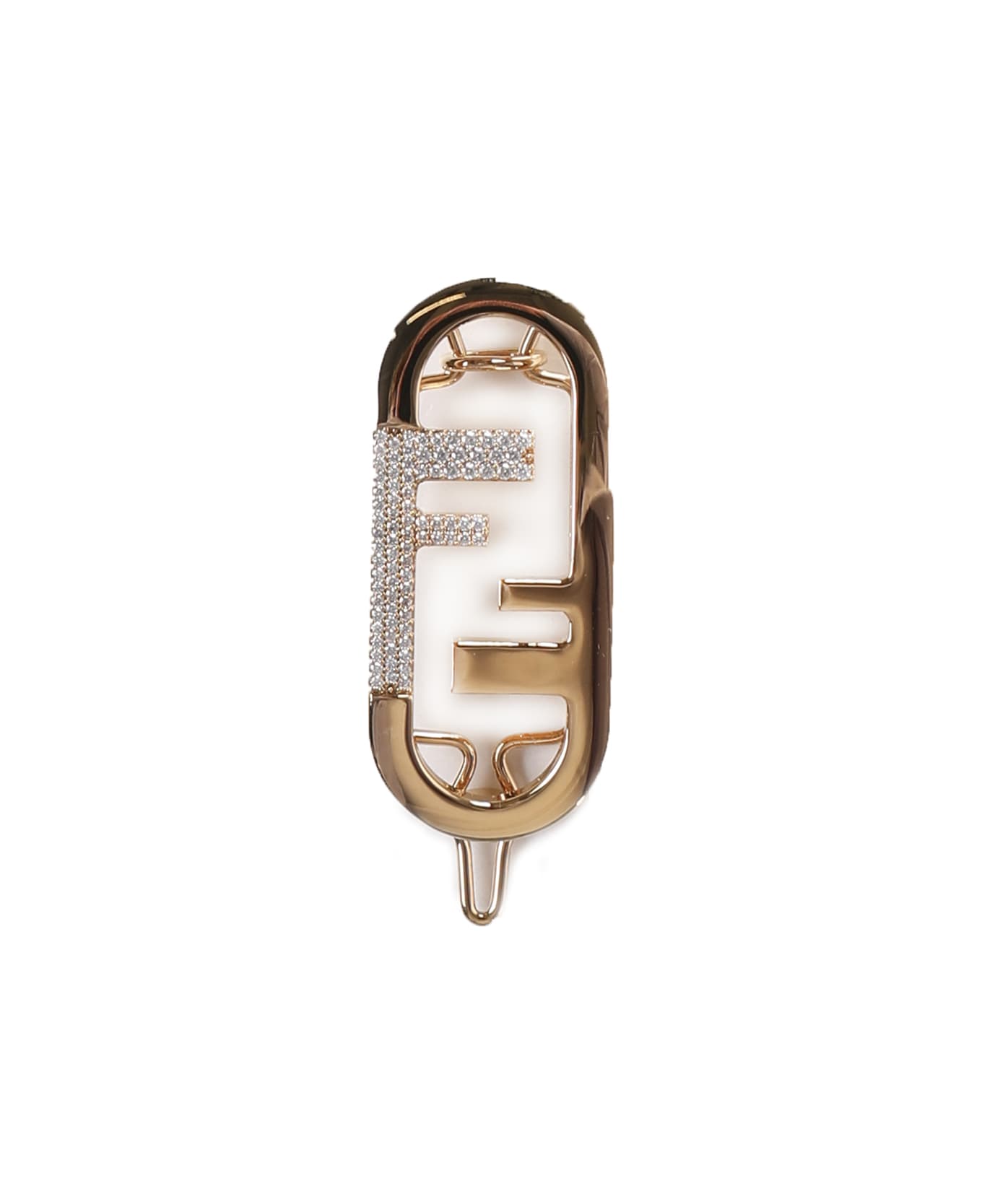 Oro soft+ crystal O'lock Clasp from Fendi -Hair clip with Fendi O'Lock motif -Made of metal with golden finish -Decorated with white crystals -Made in Italy -Color: Gold -100% Bronze