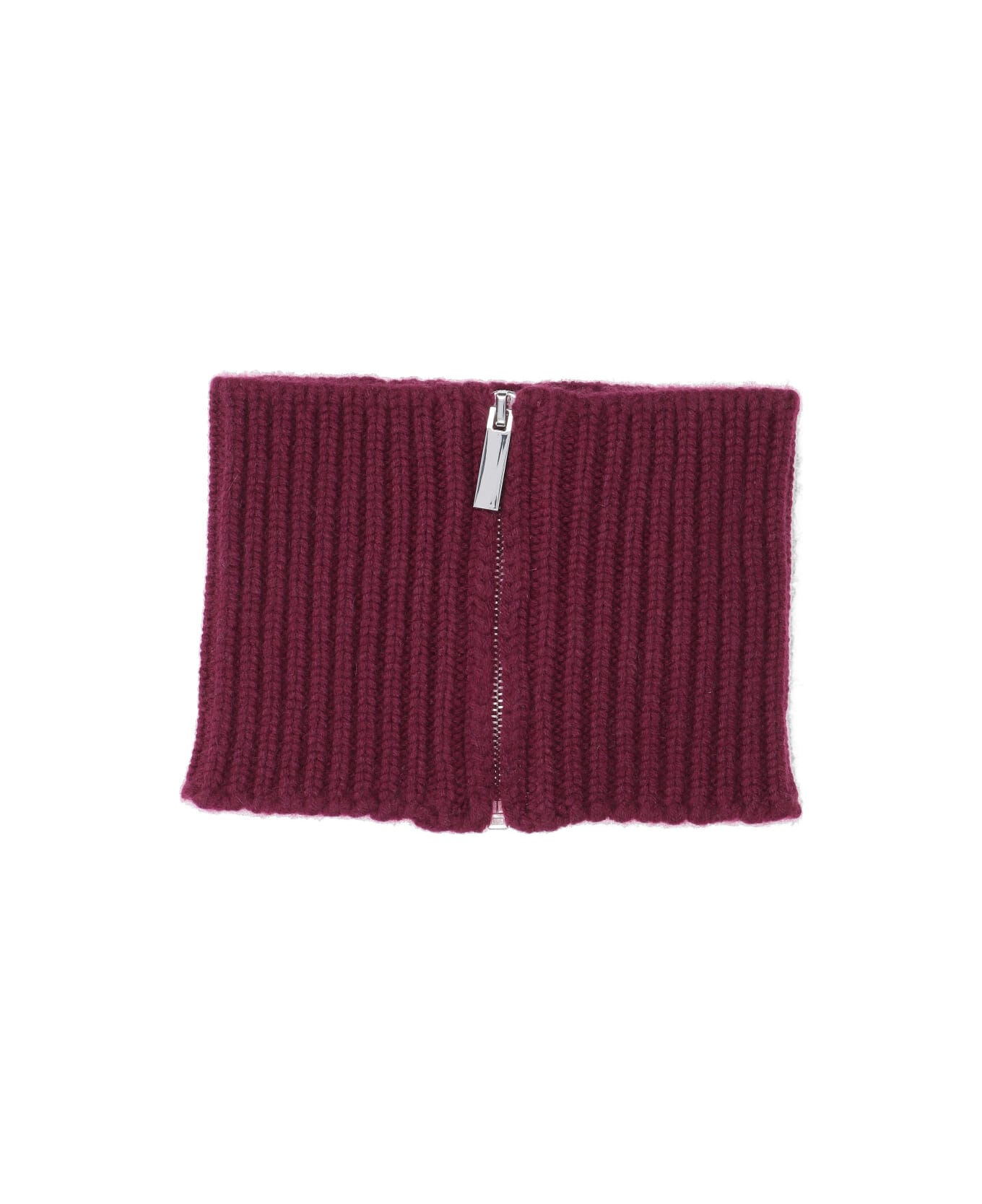 Collar Sa Su Phi scarf in burgundy red cashmere with ribbed pattern, and zipper closure.