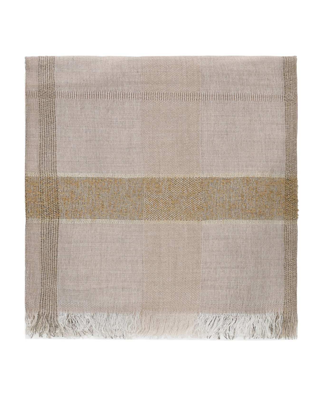 - Peserico brown woman's wol blend stole - Trims with fringes - All-over lurex details