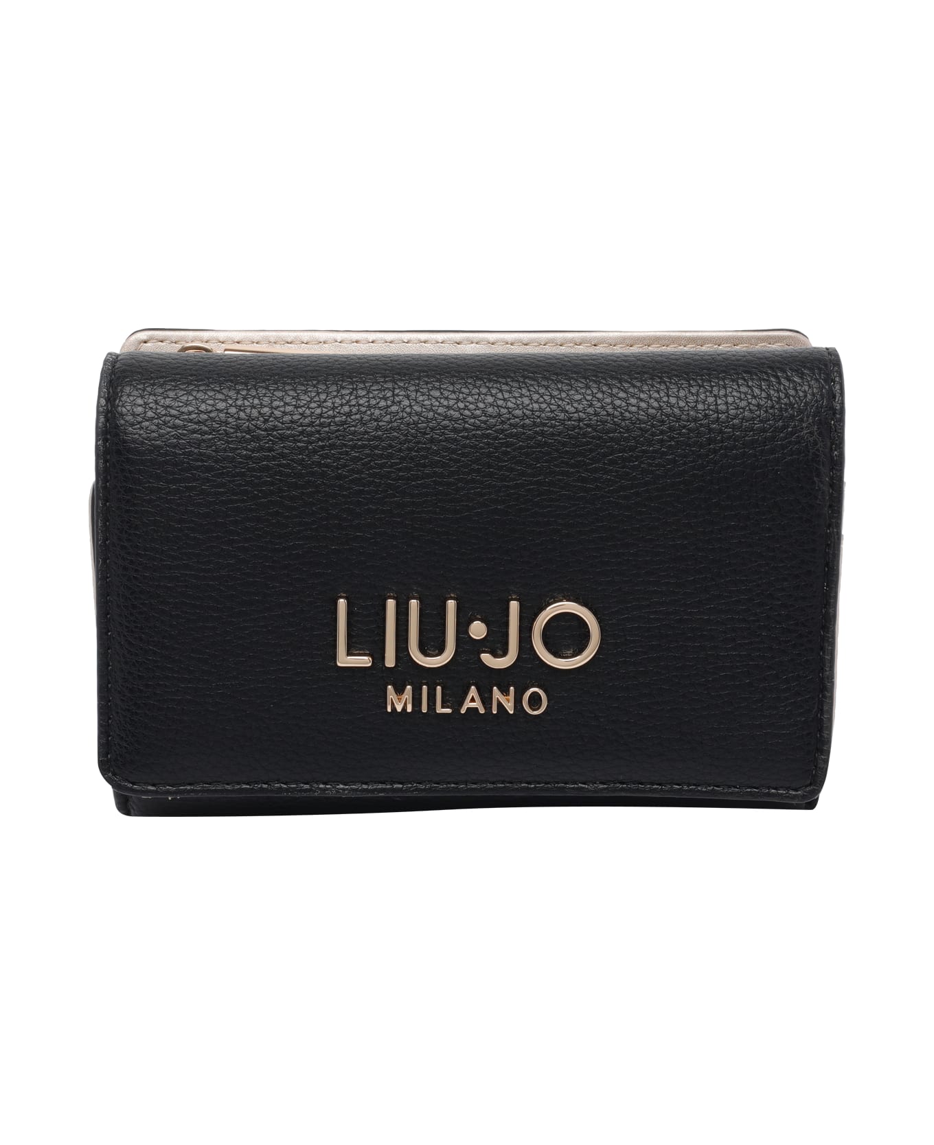 Liu Jo black logo wallet, clip closure, 13 slots, 5 pockets, 2 notes sections, frontal logo Composition: 100% Polyester