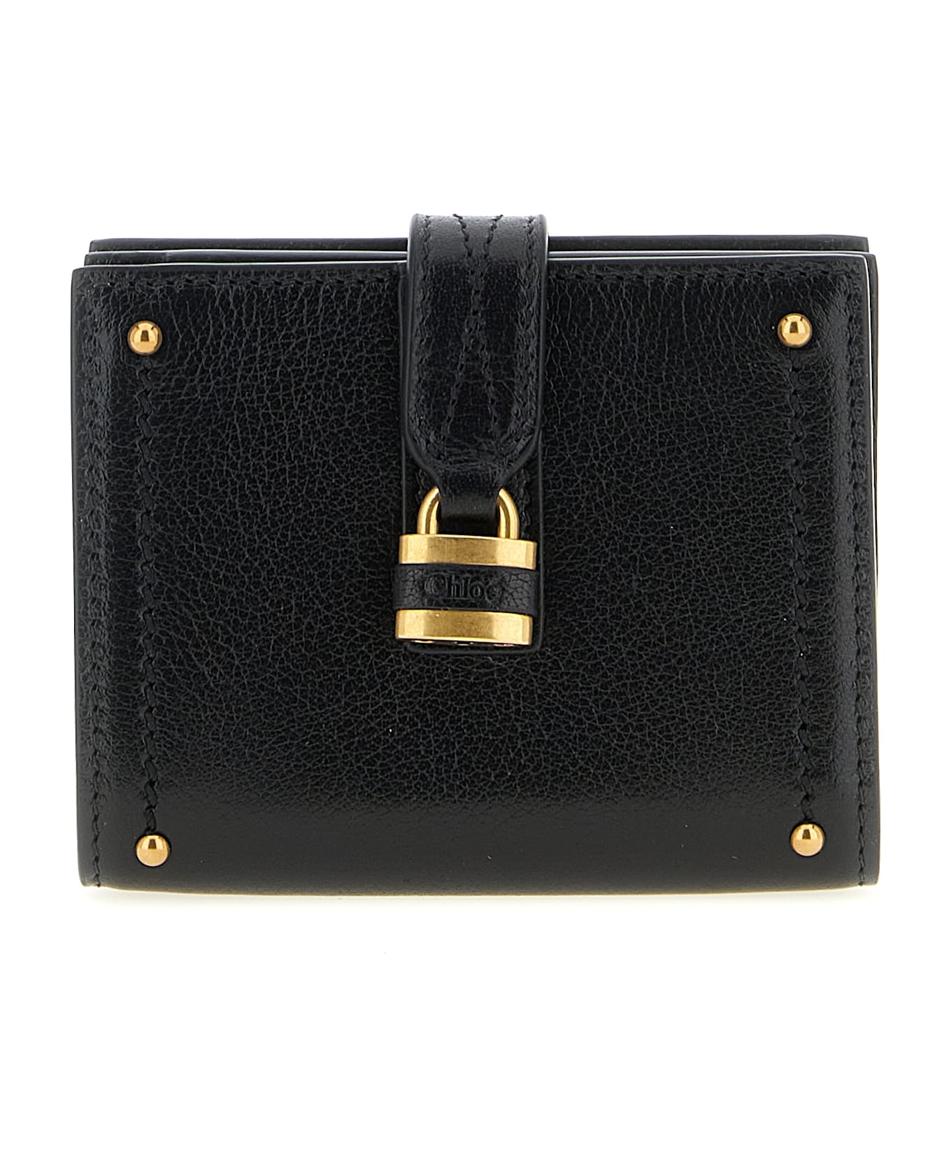 'Paddington' wallet in grenade buffalo leather, flap closure with snap button, Gold padlock and front metal studs, back zip pocket. SUSTAINABLE: To make this product, Chloé worked with tanneries with Leather Working Group (LWG) certification, which is based on water and energy consumption and chemical, solid waste and slurry management policy.