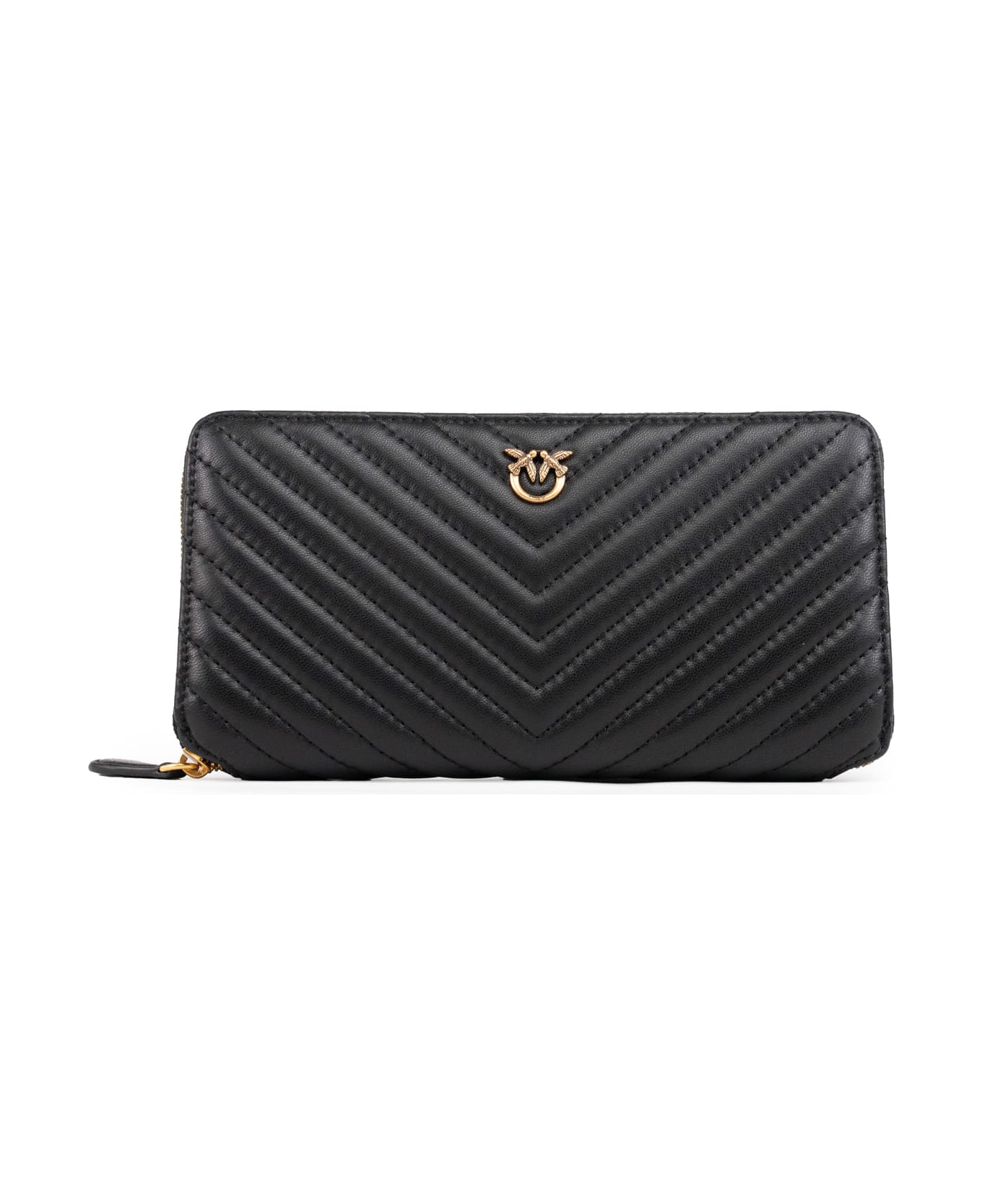 women's leather wallet with logo: cow leather zip around closure quilted design love birds logo in gold-colored metal internal compartments, one of which is closed with a zip credit card compartment lined composition: 100% leather lining: 100% polyester