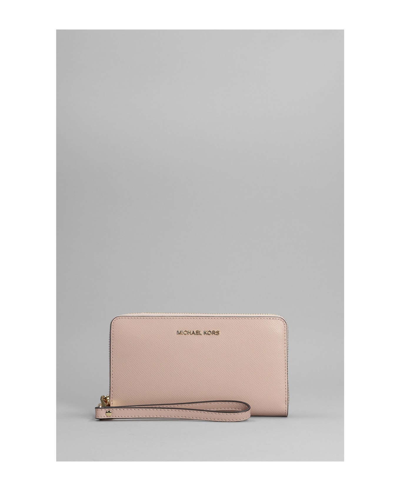 Wallet in rose-pink leather, Height 105 mm, Width 180 mm, Height 105 mm, Wristlet, zip clousure, metallic logo, interior compartments, 100% leather, Made in Vietnam
