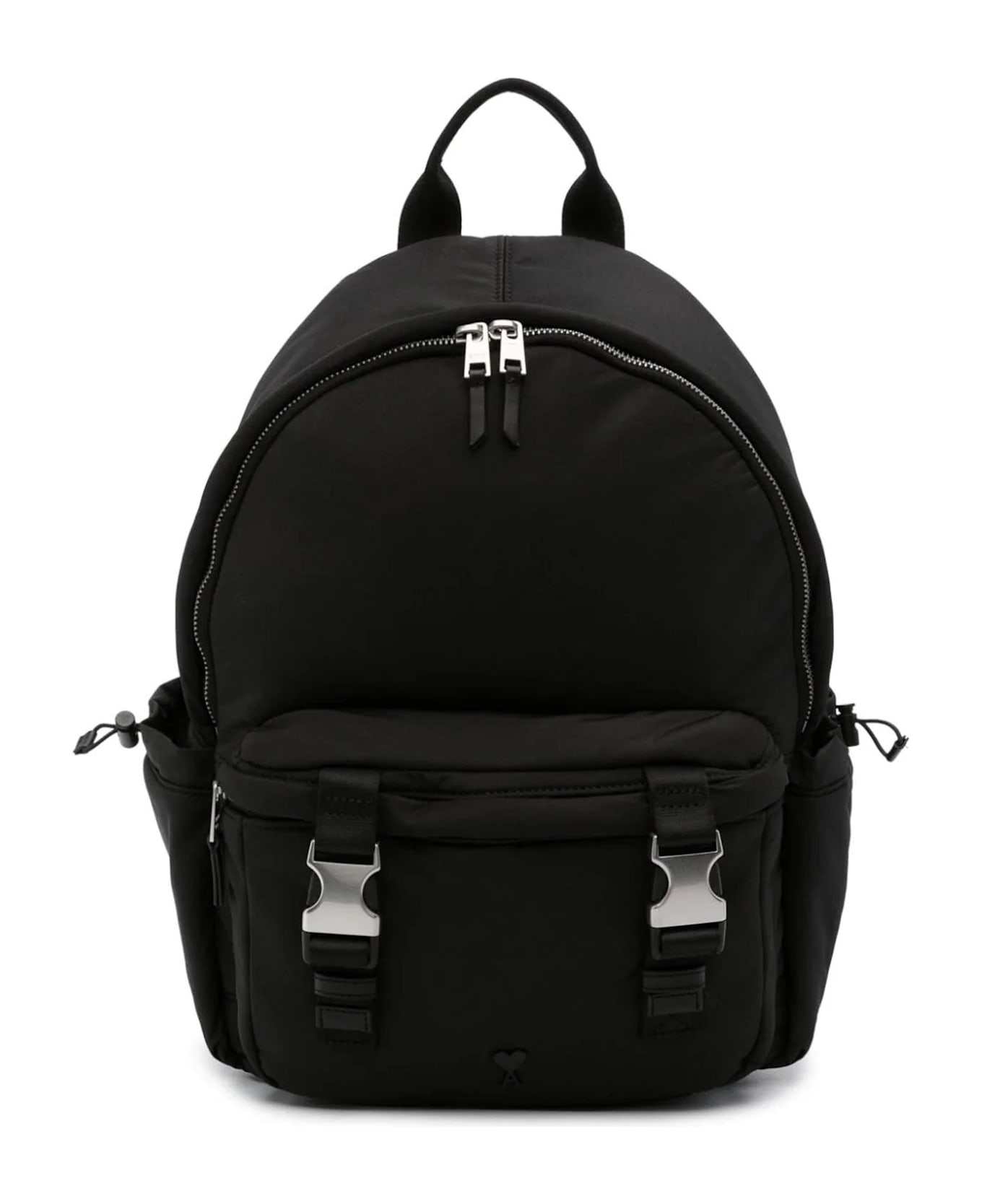 Black backpack, padded design, single top handle, two padded adjustable shoulder straps, front zip-fastening compartment, tonal logo plaque, two side patch pockets, rear card slots, main compartment, internal patch pocket, full lining, top zip fastening, Composition: Polyester, 100%