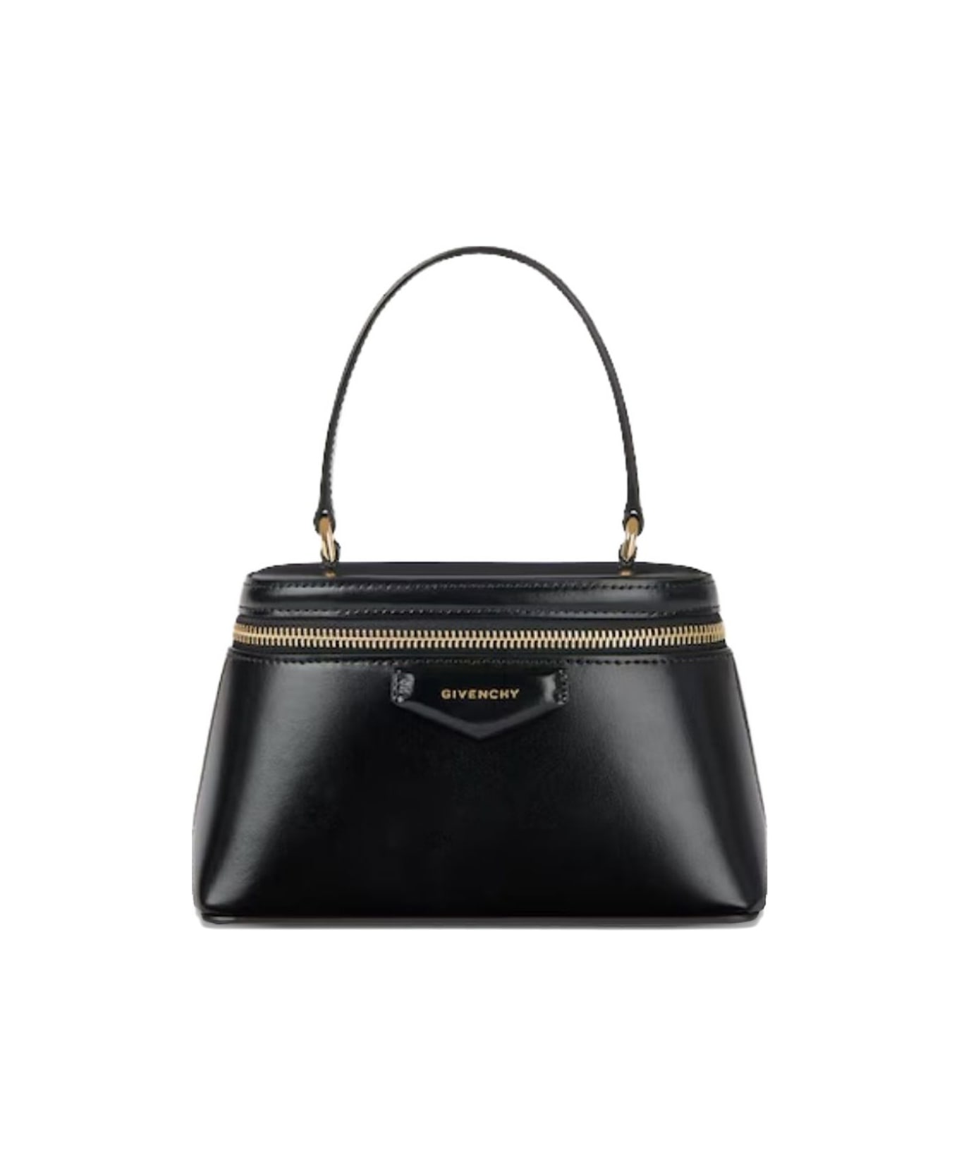 black gold-tone hardware chain strap zip fastening top handle front logo patch