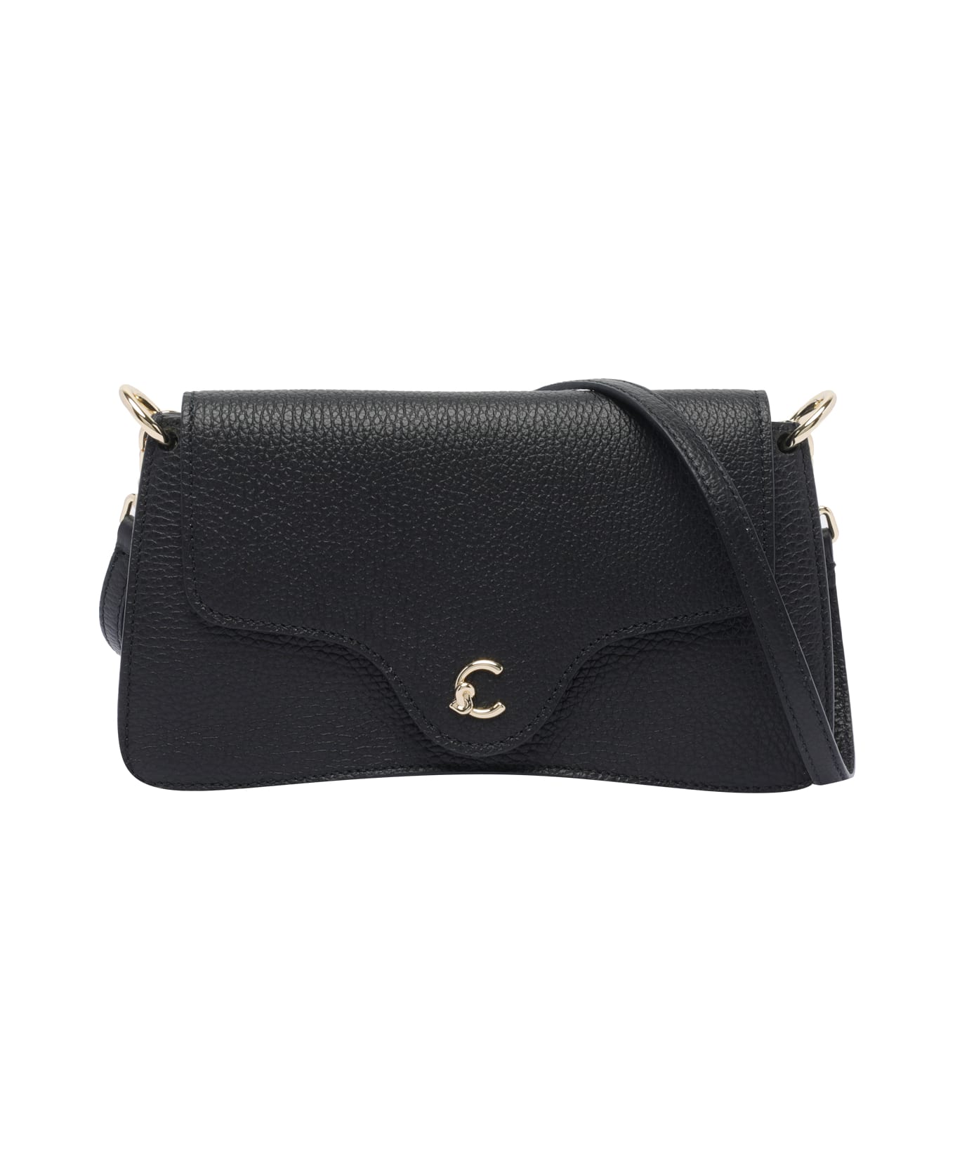Coccinelle black C-Me shoulder bag, magnetic closure, adaptable and removable strap, frontal logo
