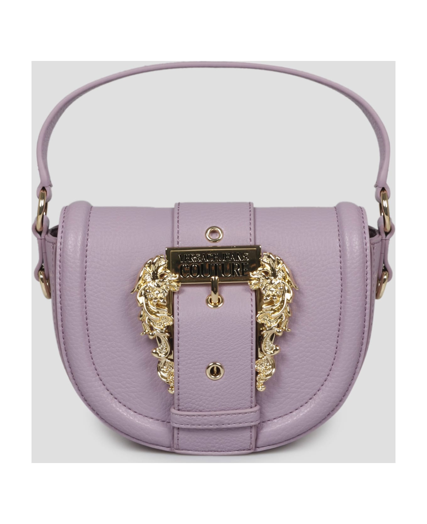 Versace Jeans Couture 01 bag in half-moon shape, crafted in grained faux-leather with iconic Baroque metal buckle. - SS23
