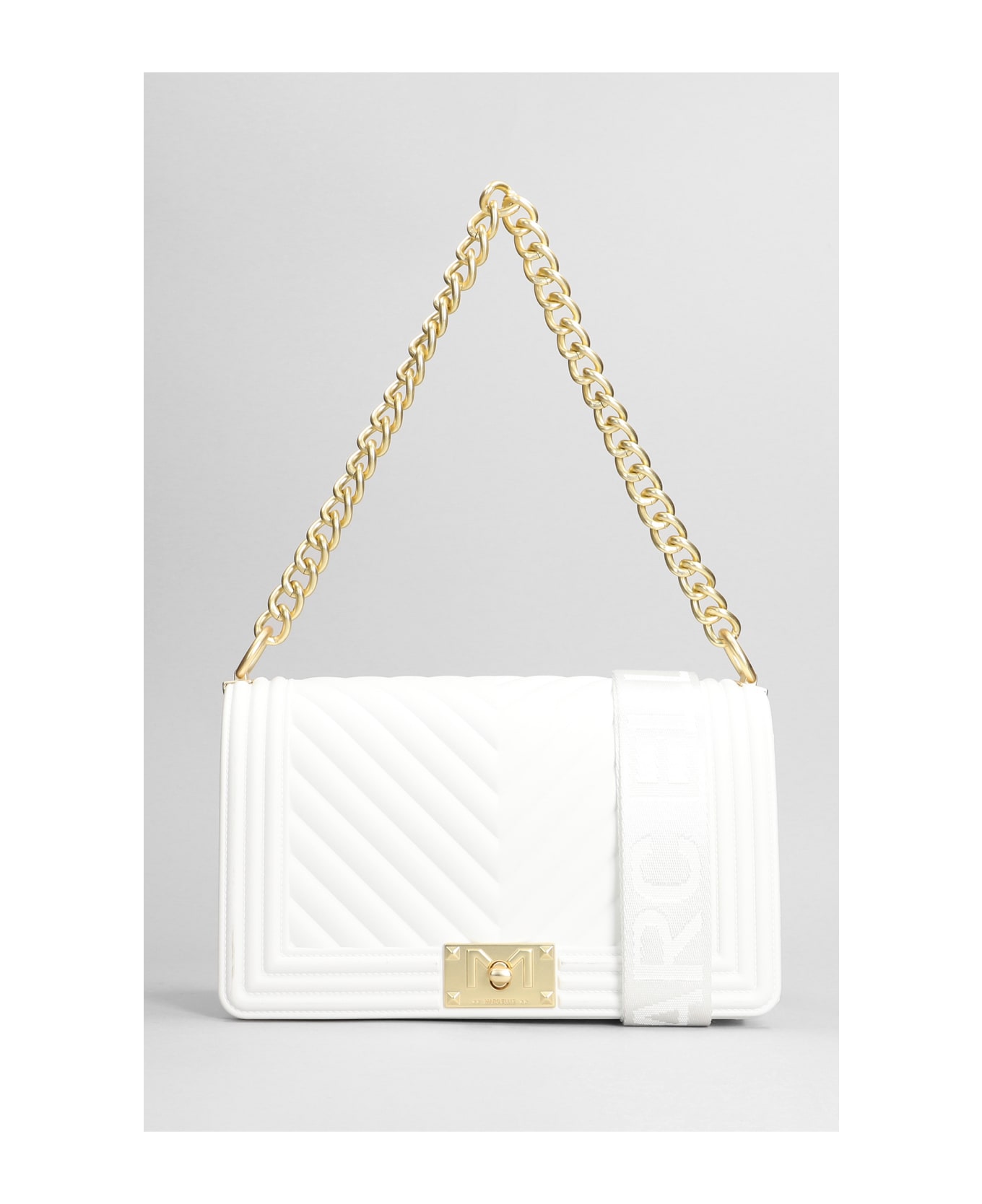 Flat M Shoulder bag in white PVC, double straps, quilted design, turn lock, 100% artificial leather, Made in Italy, Height 130 mm, Width 250 mm