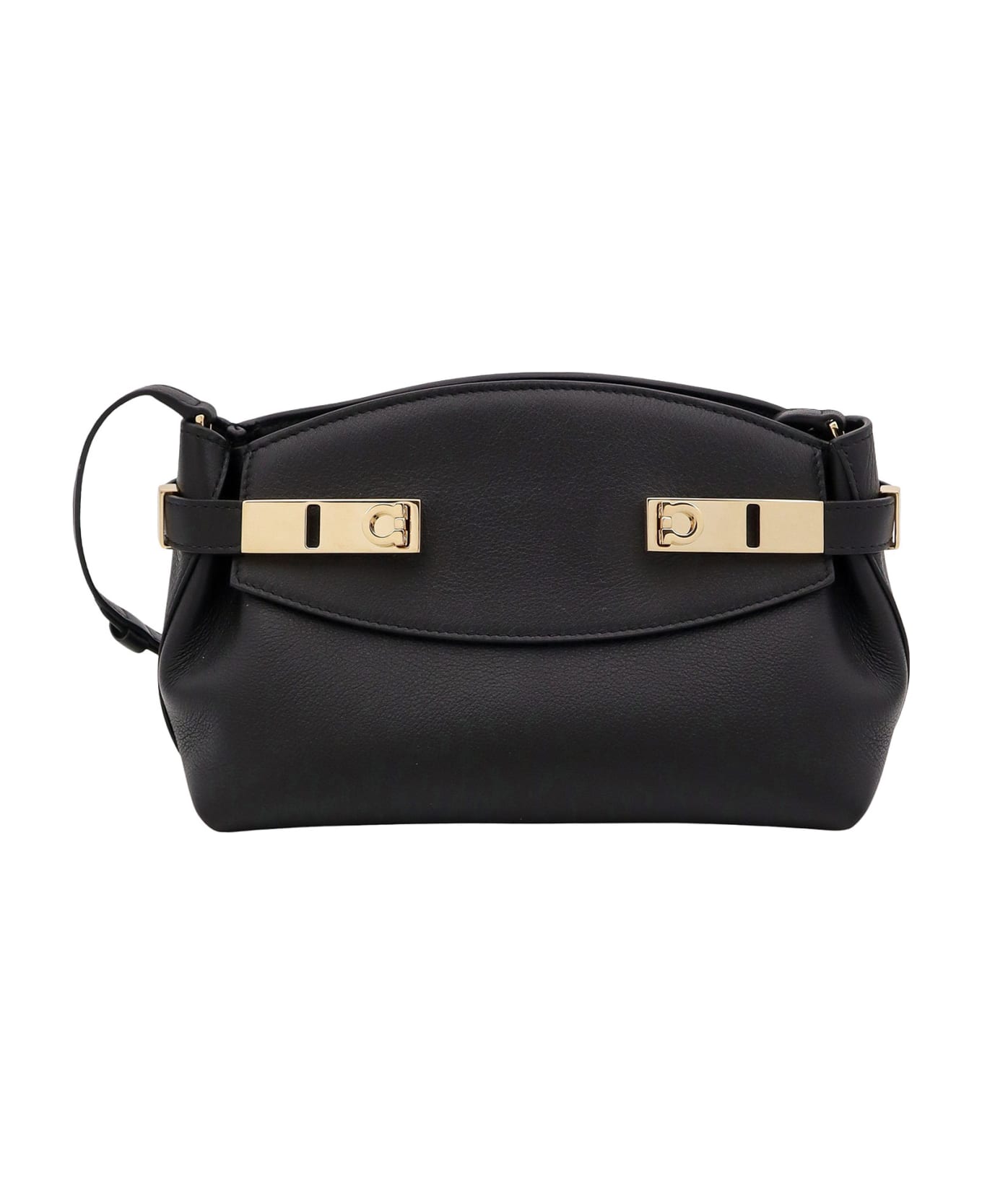 Leather shoulder bag with iconic metal Gancini