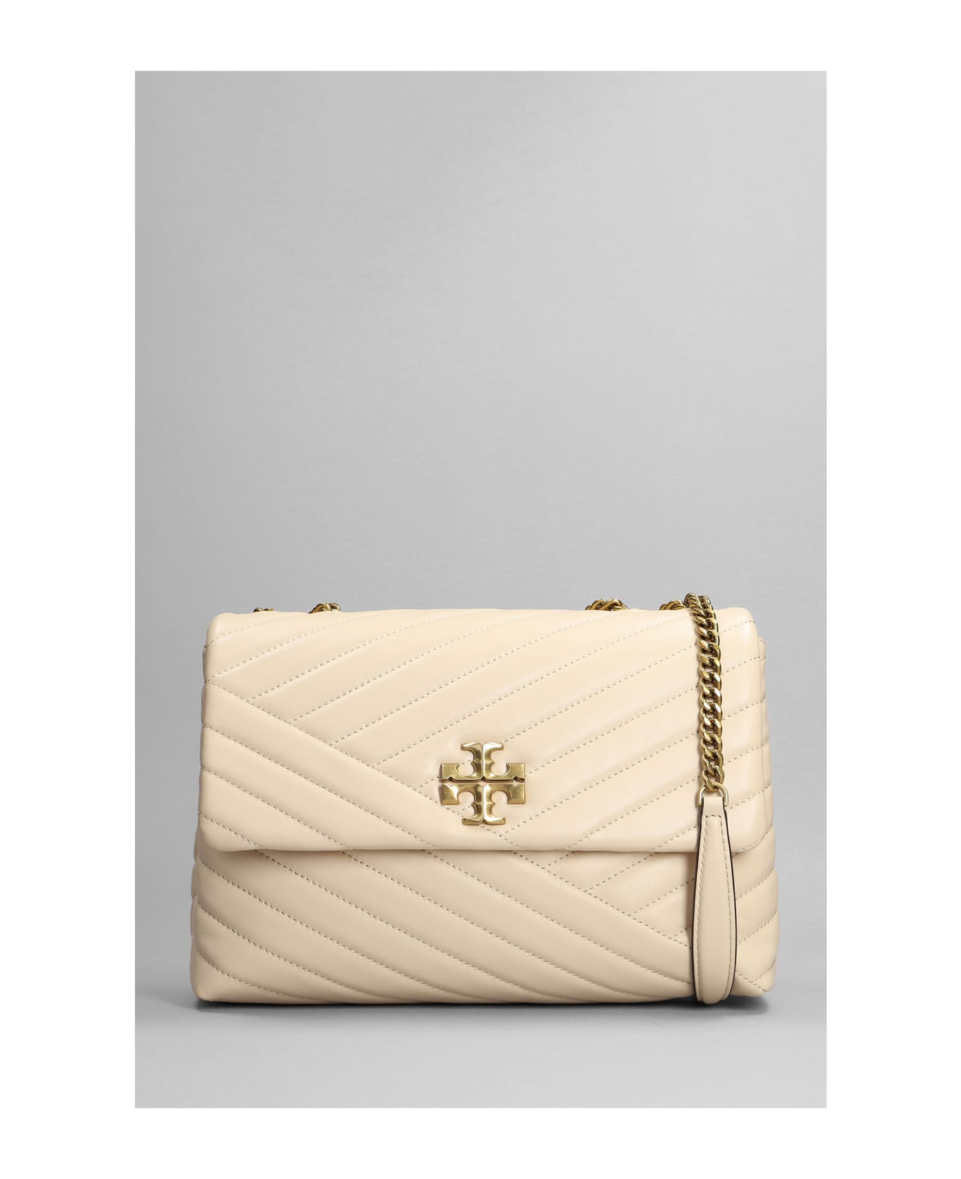 Kira chevron Shoulder bag in beige leather, chain and leather carry, quilted leather, magnetic closure, metallic logo, gold hardware, 100% leather, Made in Vietnam, Height 180 mm, Width 285 mm