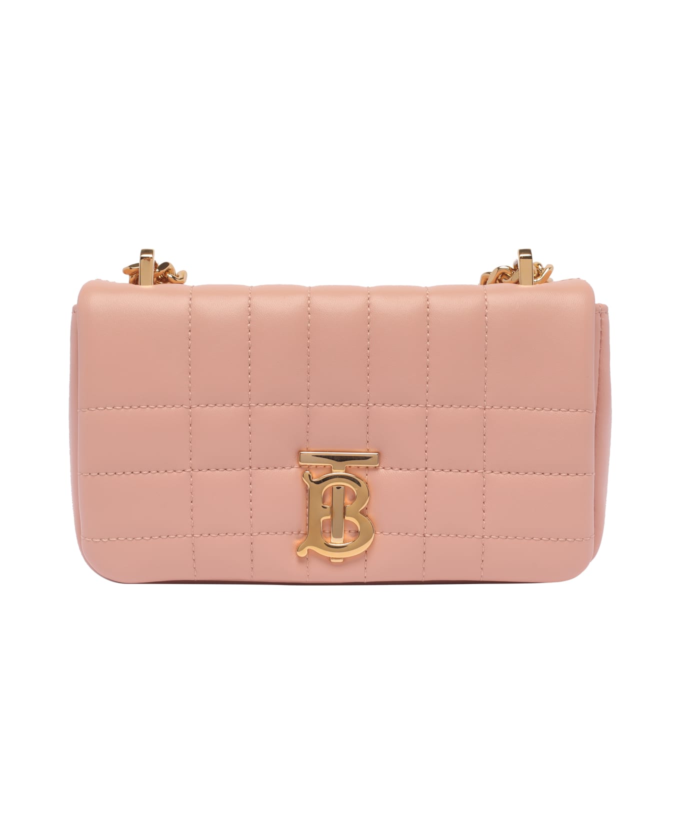 Burberry dusky pink Lola crossbody bag with magnetic closure, one inner open pocket, chain shoulder strap, frontal logo and golden details Composition: 100% Lamb Leather
