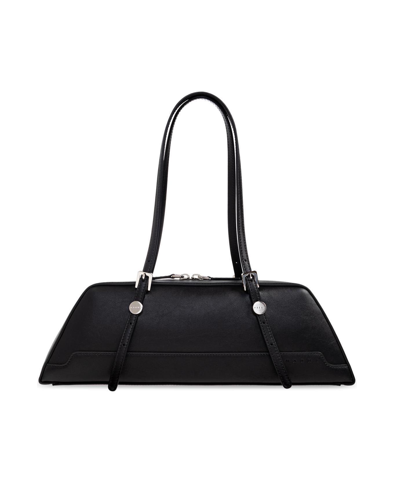 Exuding refined modernity, this shoulder bag from Marni's exclusive collection is a testament to signature Italian artistry. The bag's distinctive elongated trapezoidal silhouette broad at the base and elegantly narrowing towards the top creates a bold yet minimalist profile that is instantly recognizable. Meticulously crafted from smooth, premium natural leather, its matte finish and visible surface grain reflect an understated sophistication. Unembellished and sleek, the design is accentuated by two vertical leather bands with double stitching that gracefully frame both the front and back, ingeniously integrating with the chic handles. Silver-toned hardware, including carabiner clips, a sophisticated metal clasp, and round, engraved logo buttons, elevate the overall allure with subtle yet striking detail. This piece is a seamless blend of restrained luxury and contemporary Italian design. Why choose this product? Unmistakable, avant-garde silhouette Finest quality leather with a matte, textured finish Minimalist design with masterful craftsmanship Exclusive designer hardware and signature logo accents A sophisticated statement for any discerning wardrobe