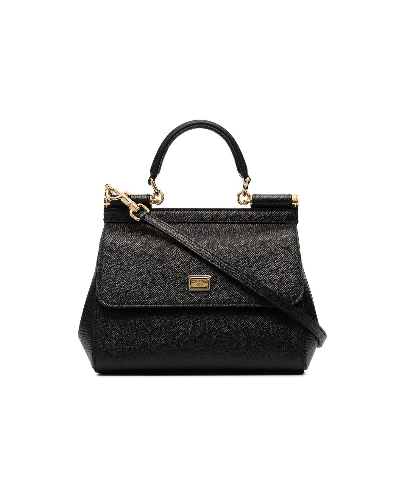 Mini Sicily Shoulder Bag from Dolce & Gabbana: Black Mini Sicily Shoulder Bag with top handle, fold over top, magnetic closure, internal compartment, front logo plaque, impact mirror, adjustable and detachable shoulder strap. 100% Calf Leather