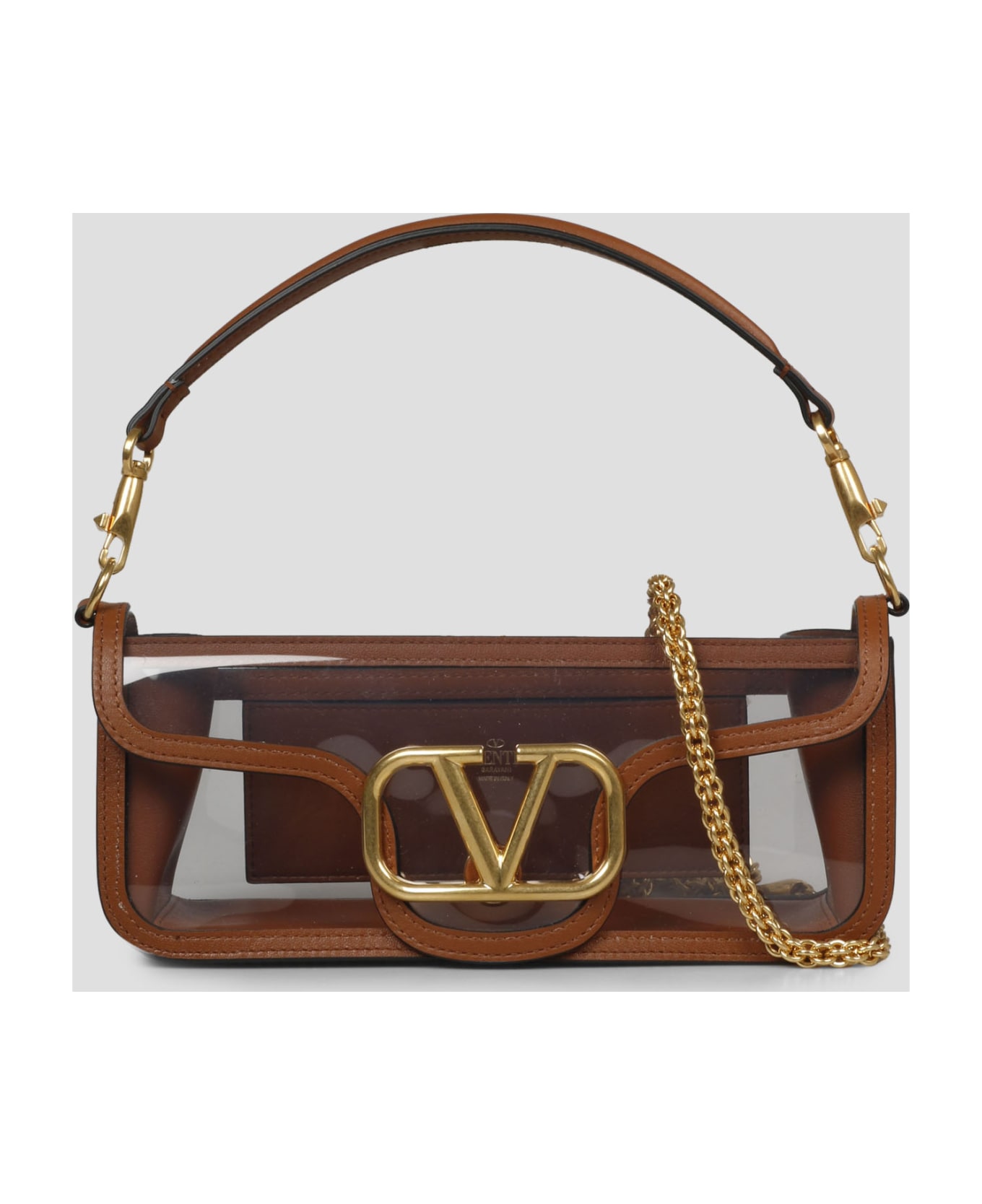 Valentino Garavani Locò shoulder bag in transparent polymeric material with leather trim and metallic VLogo Signature detail. - SS23