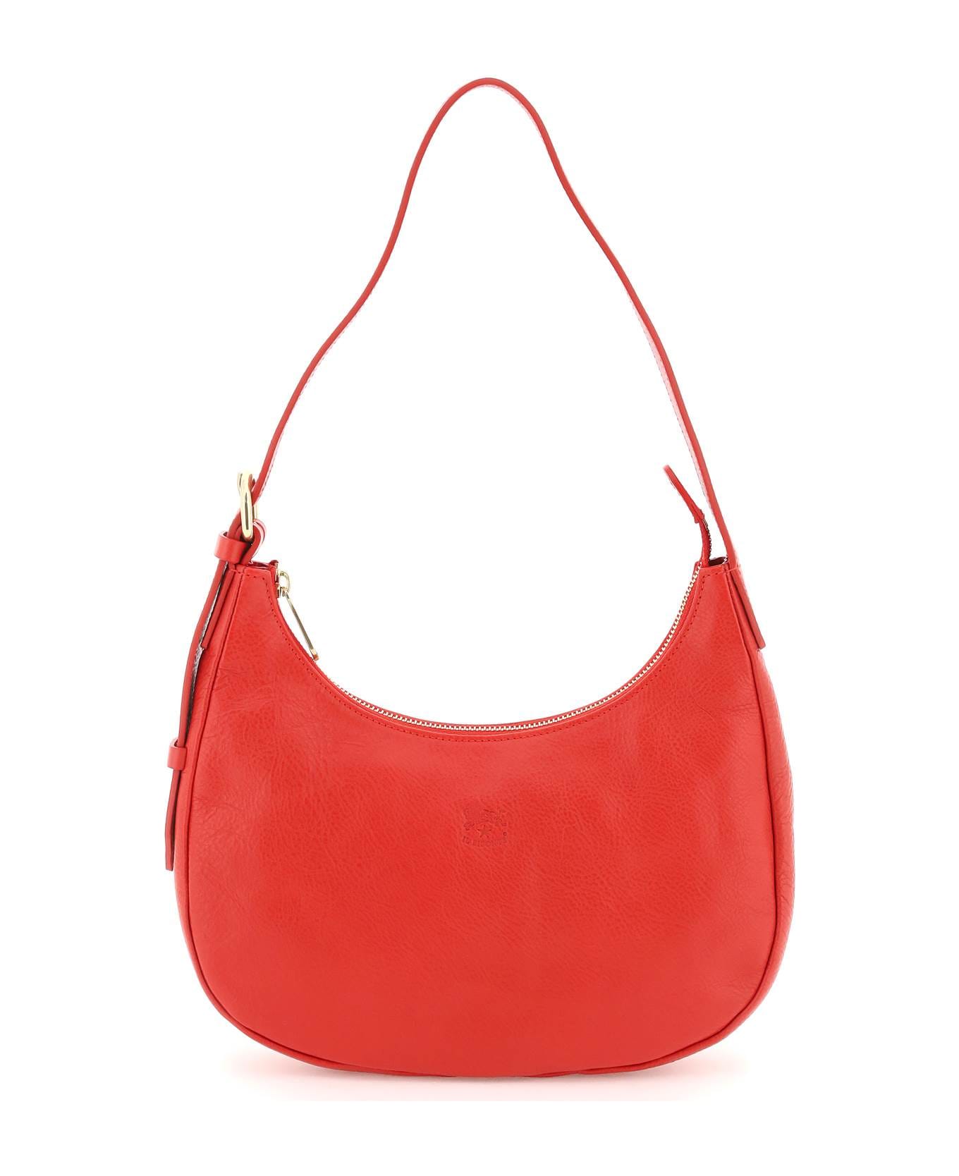 IL BISONTE bag crafted in vegetable-tanned grained vacchetta leather with debossed logo on front and adjustable strap to carry on the shoulder. Zip closure, cotton canvas lining, one inner open flat pocket and one with zip closure. Gold-finished metalware.