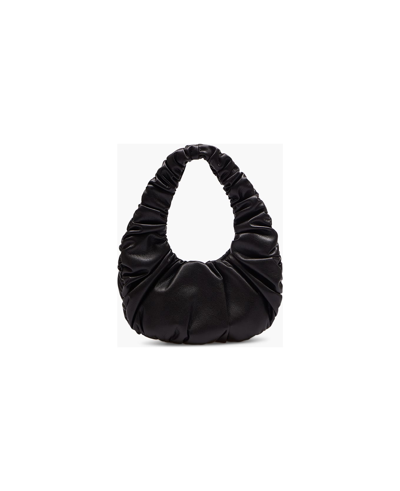 ANJA BAG FROM NANUSHKA _SOLID BLACK _SINGLE HANDLE DROP _ZIP CLOSURE _RUCHED MANUFACTUR _TOTAL HEIGHT 44 CM _WIDTH 34 CM _HNDLE DROP 25 CM _60% PU 40% RECYCLED POLYESTER _MANUFACTURER STYLE NW22PFBG00199