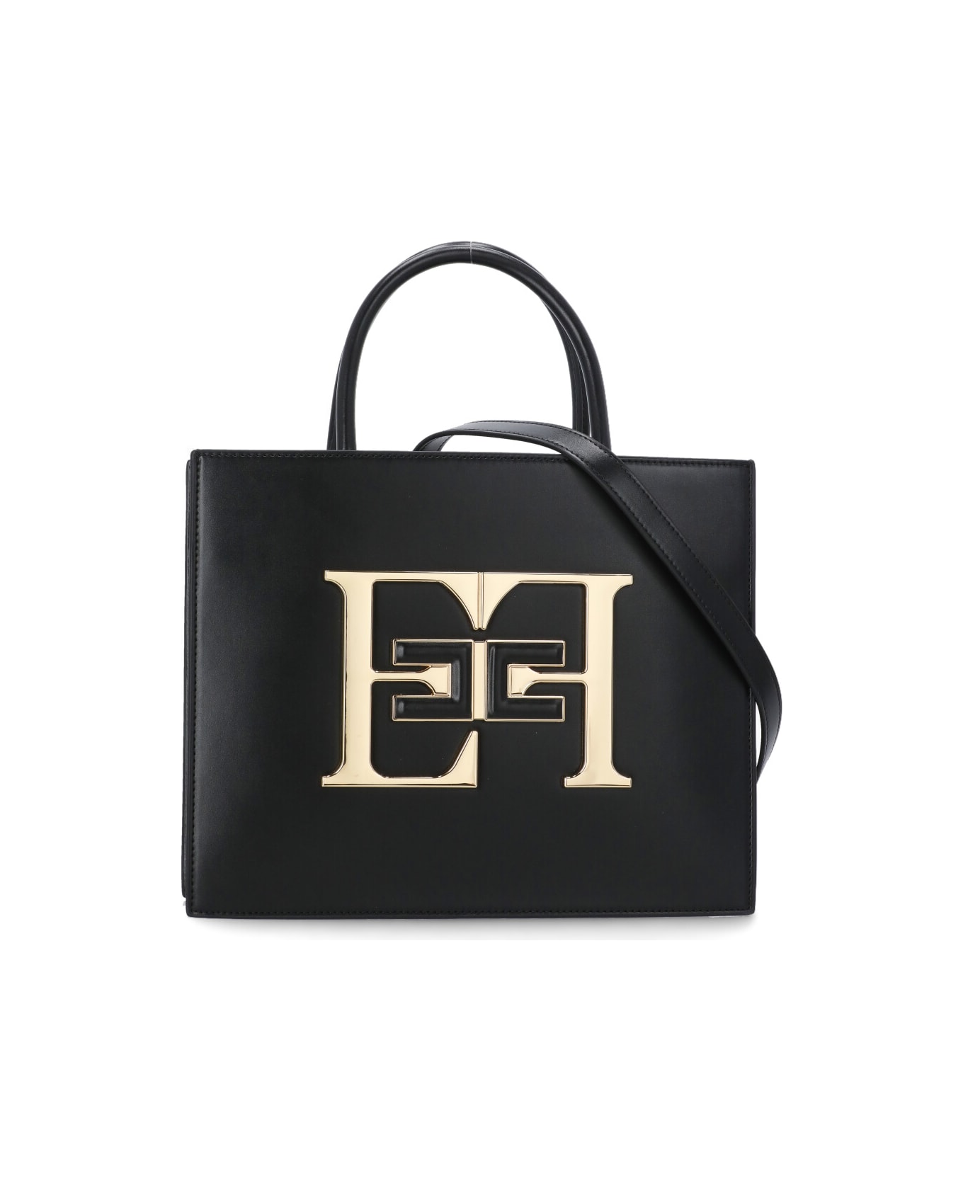 - Black Elisabetta Franchi synthetic leather hand bag for woman - Two handles - Removable shoulder strap - Two interior welt pockets - Front golden metal logo - Zip fastening