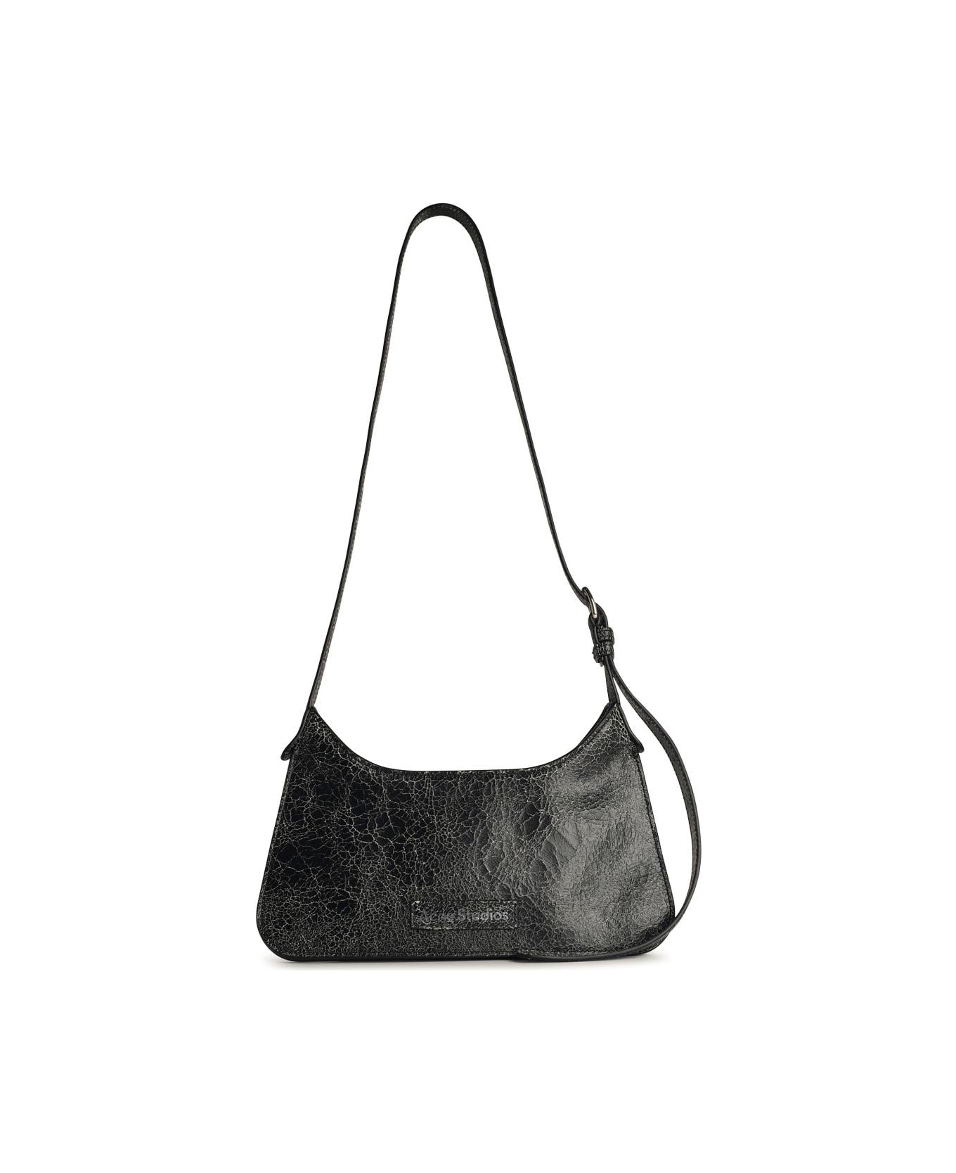 Made of cracked leather, contrast logo patch, adjustable handle with accordion side pleats, logo zip closure, single inner compartment, decorative skeet on the back\n29 x 15 x 3 cm