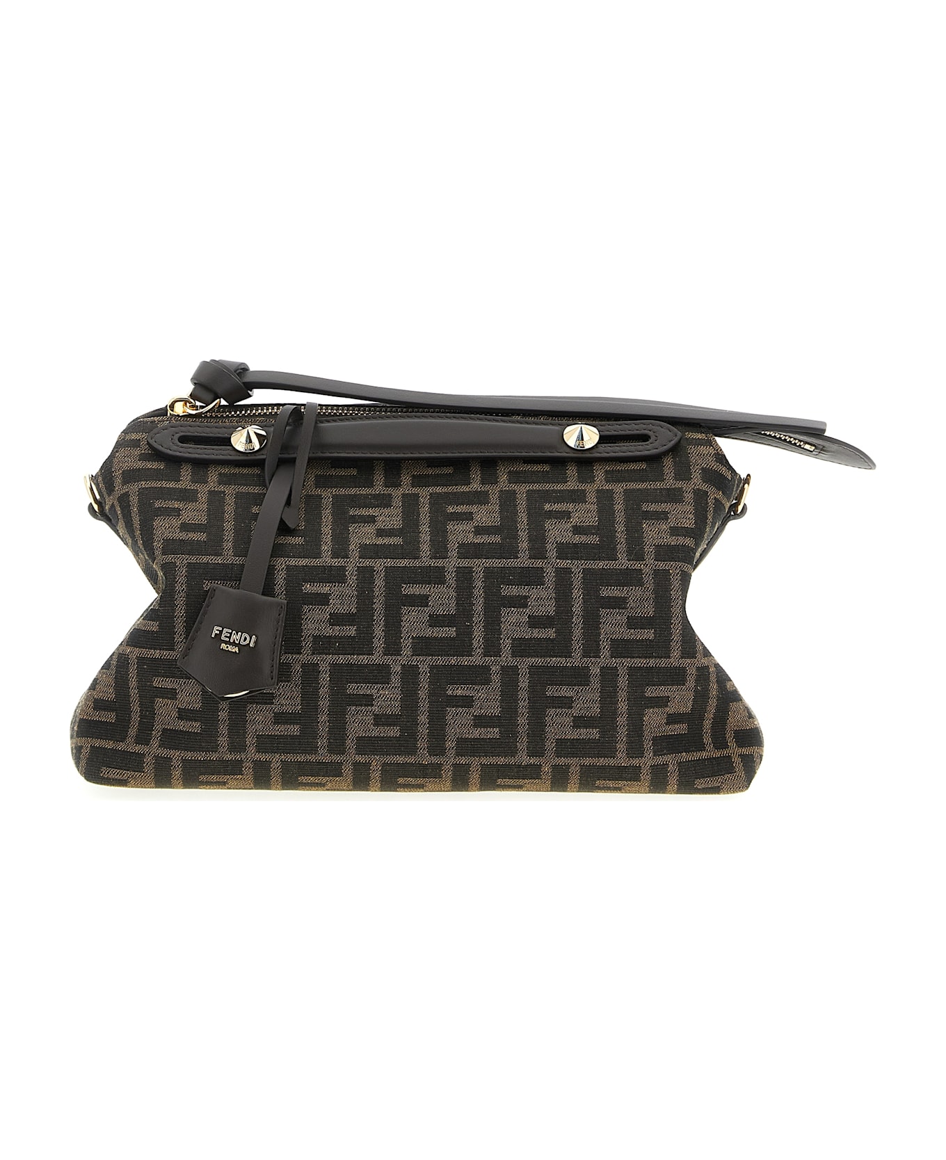 'By The Way Soft Medium' jacquard fabric handbag with iconic FF pattern and leather, top zip closure, double handle with metal details, logo tag with removable keyring, adjustable and removable shoulder strap.