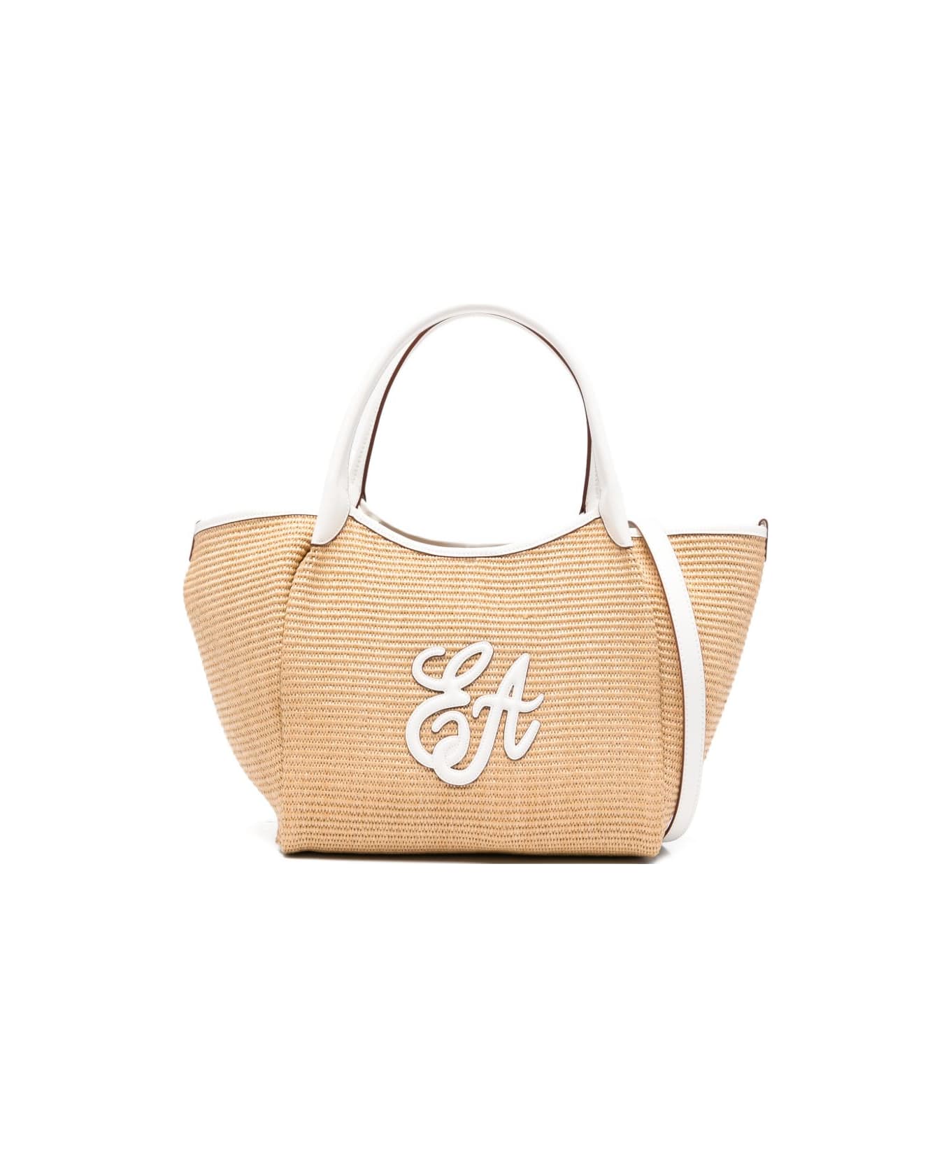 beige and white top handle appliqué detachable shoulder strap internal zip-fastening pocket open top This piece comes complete with a protective dust bag. Composition: 50% Polypropylene, 50% Polyester
