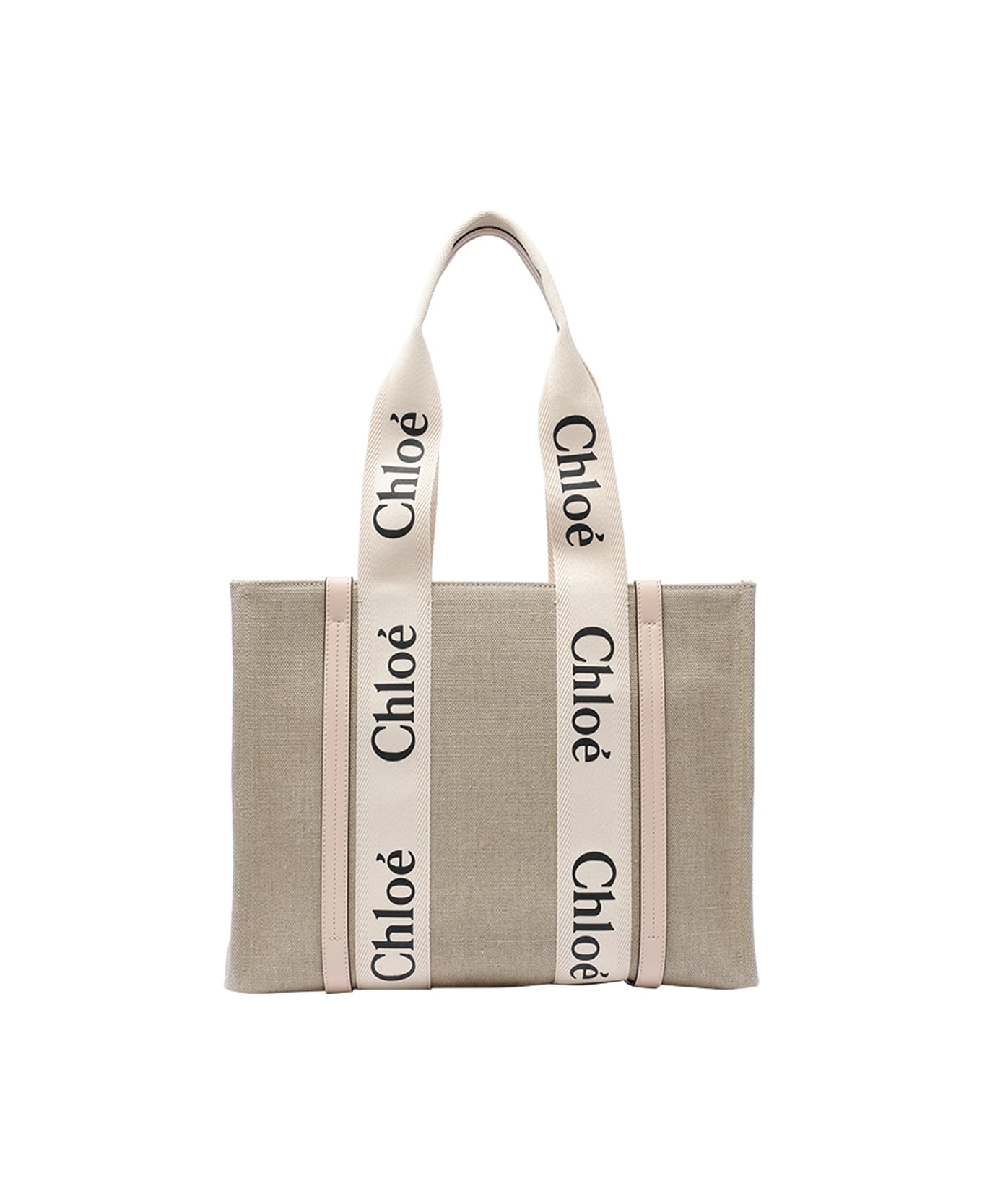 Chloé medium Woody tote bag, inner open pocket, double handle Composition: 100% Linen