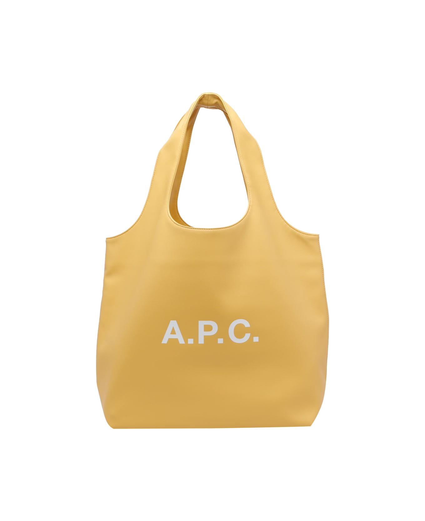 A. P. C. butter Ninon tote, one inner open pocket, two handles, frontal print Composition: 55% Polyurethane, 40% Polyester, 5% Calcium Carbonate
