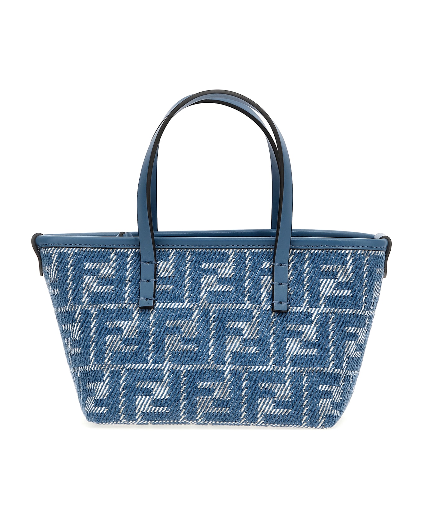 FF jacquard Roll Mini shopping bag with denim effect and smooth leather, Pequin jacquard lining with tone-on-tone denim effect, zip closure, double fixed handle, adjustable and removable shoulder strap. Composition: 97% cotton 3% polyester