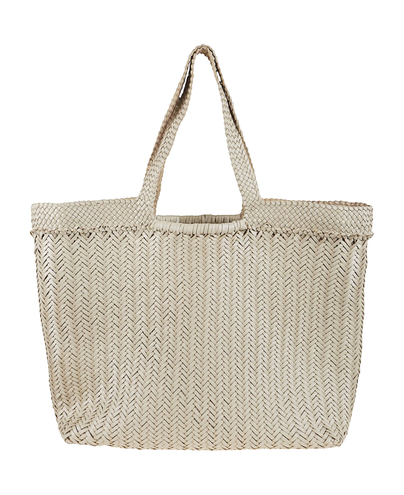 TRIPLE JUMP WEAVE MAXI SHOPPER bag in soft buffalo calfskin. Unlined and with an open top. Embellished with an antiqued Saint Christopher medal pendant, in homage to the patron saint of travellers, it is hand-sewn inside each Dragon Diffusion bag: the seal of authenticity of our brand.