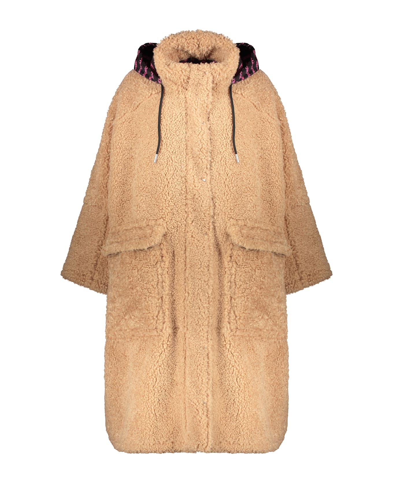 This coat features a roomy and comfortable design, crafted from soft beige fabric. the zipper and automatic button closure allow for a secure fit, while the high collar protects from the cold. the wide sleeves offer freedom of movement, making this piece ideal for casual and informal looks. perfect for layering over sweaters or other garments, it easily adapts to various occasions. the side pockets add a practical touch.