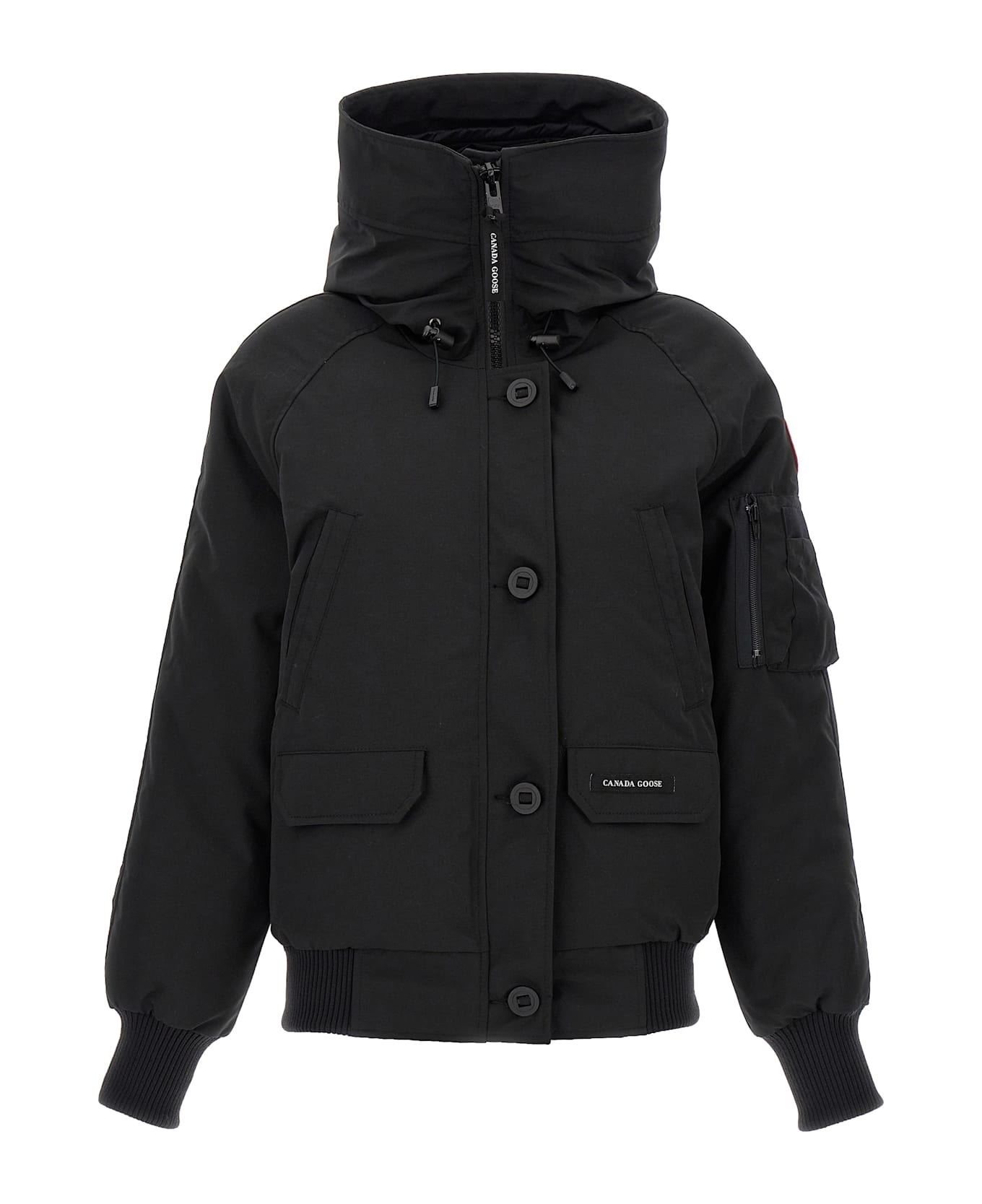 'Chilliwack' bomber jacket in technical fabric, padding, zip and button closure, hood, pockets, long sleeves with knitted cuffs. Composition: 84% polyester, 16% cotton
