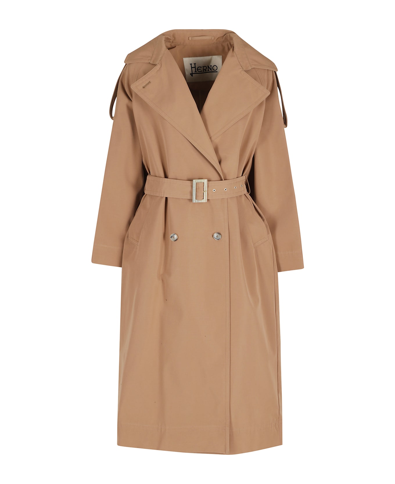 Category: Trench coat Item: Long Trench coat Brand: Herno Color: Camel Pockets: Flush sides Details: Waist belt, Central back vent Closure: Double-breasted SIZE AND FIT Fit: Regular Sleeve: Long