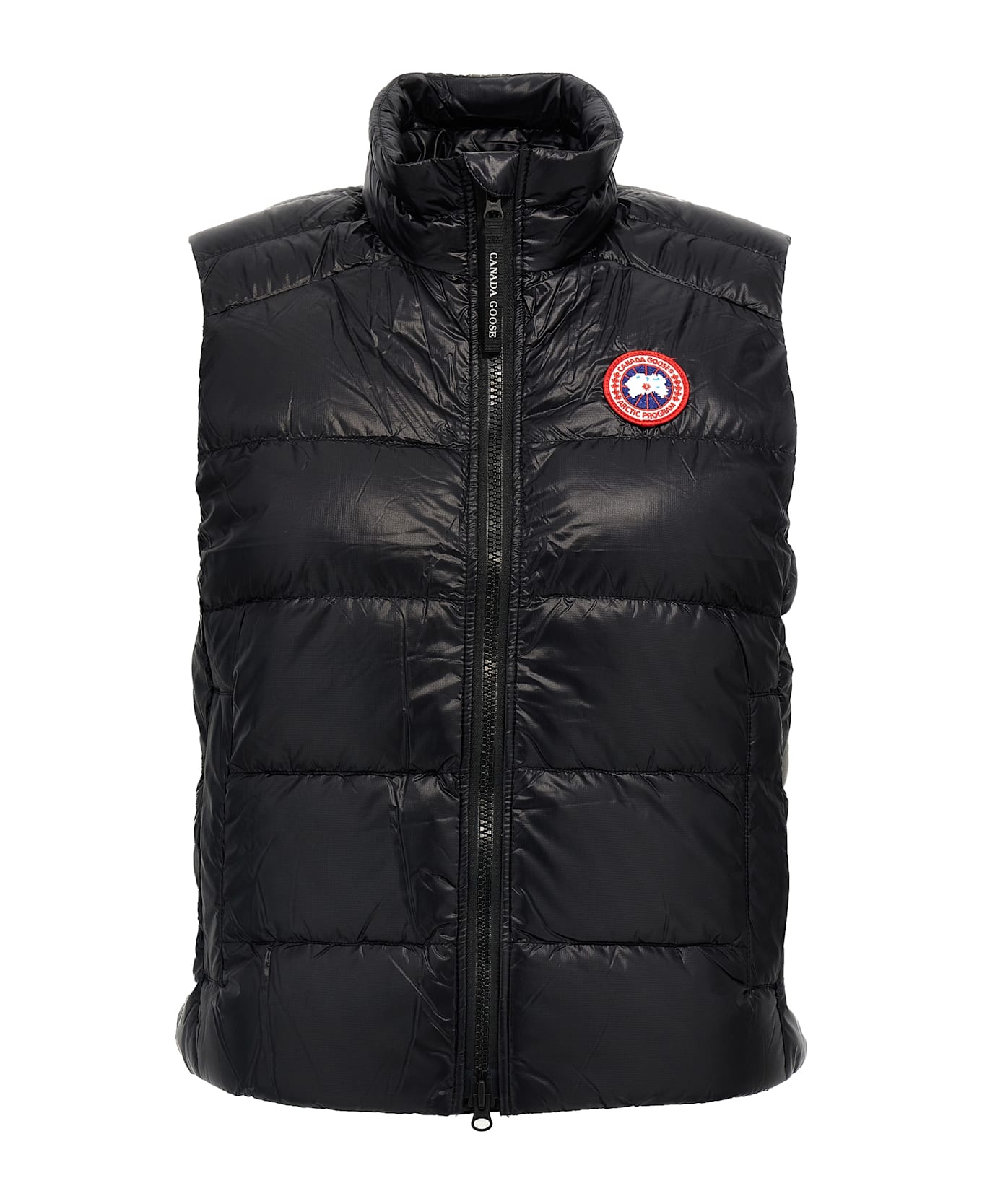 'Cypress' nylon vest with feather padding, zip closure, pockets, adjustable drawstring at the hem, front logo patch. Composition: 100% polyamide