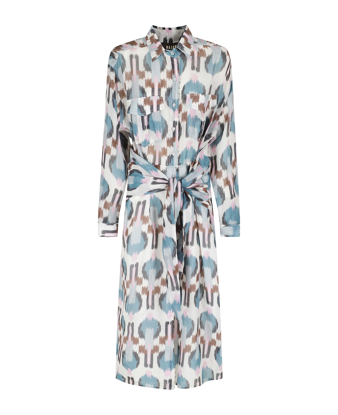 Category: Dress Item: Sash Dress Brand: Bazar Deluxe Color: Multicolour Neckline: Shirt collar Details: All-over print fabric, flap chest pockets, sash waist Closure: Front with buttons SIZE & FIT Fit: Regular Skirt: Midi